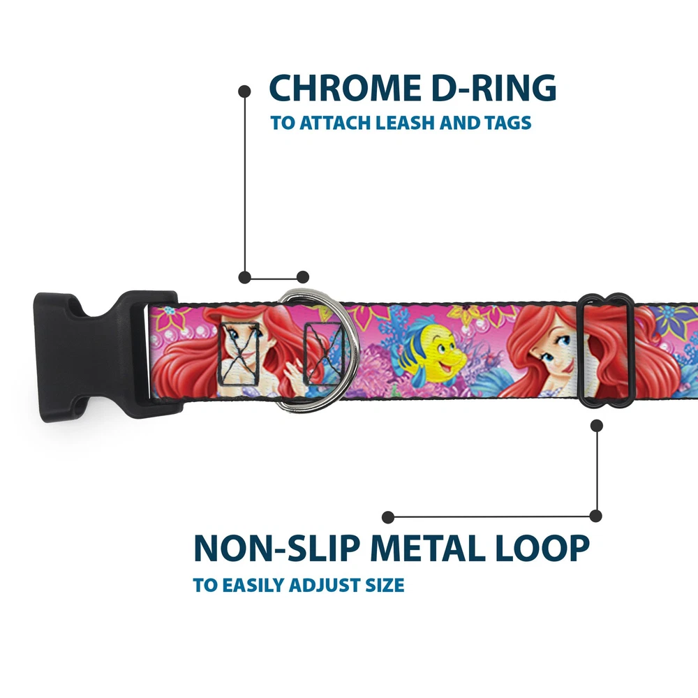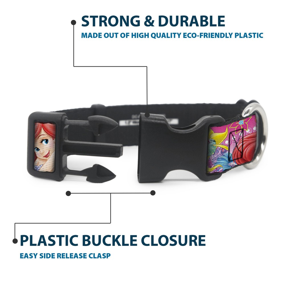 Further Details Title: Plastic Clip Collar Ariel/Flounder/Fish Trio Poses Pinks Medium 11-16.5" Condition: New Release Date: 09/28/2016 Item Weight: 58g Item Height: 25mm Age Level: ‎All Life Stages Brand: The Little Mermaid MPN: WDY132-1.0-M Item Length: 431mm Size: 1" Wide - Fits 11-16.5" Neck - Medium Number of Items: ‎39054 Type: Dog Collar Plastic Clip Buckle Material: Polyester Pattern: Dog Dimensions: 17 x 1 x 1 inches; 2.08 ounces Item Width: 25mm Color: Pink Description: Vibrant and bold, this beautiful, polyester dog collar is made to show off your dog's unique style through all the seasons. With an overengineered plastic buckle and strong D-ring, this durable collar can hold up to whatever your dog can dish out. This product is officially licensed by Disney. Closure: Buckle Dog Breed: ‎All Breed Sizes Fits 11-16.5" neck size and is 1" wide. Vibrant and bold, this beautiful polyester dog collar is made to show off your dog's unique style through all the seasons. With an overengineered plastic buckle and strong D-ring, this durable collar can hold up to whatever your dog can dish out. This product is assembled in the USA by Buckle-Down and is officially licensed by Disney. Matching leads/leashes available Missing Information? Please contact us if any details are missing and where possible we will add the information to our listing.