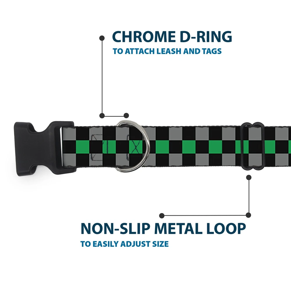 Plastic Clip Collar Checker Black/Gray/1 Green NARROW-Medium 8.5-12"