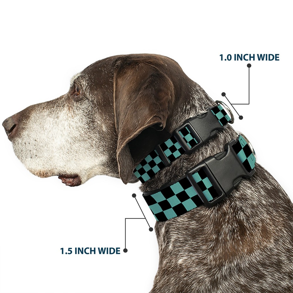 Dog Breed: ‎All Breed Sizes Dimensions: 15 x 1 x 1 inches; 1.76 ounces Item Width: 25mm Title: Plastic Clip Collar Checker Black/Teal Small 9.5-13" MPN: W32914-1.0-S Closure: Buckle gtin13: 0700146670838 Number of Items: ‎15045 Color: Turquoise Age Level: ‎All Life Stages Material: Nylon Brand: Buckle-Down Designs Type: Dog Collar Plastic Clip Buckle Item Height: 25mm Size: 1" Wide - Fits 9.5-13" Neck - Small Release Date: 03/16/2017 Pattern: Checker Item Weight: 49g Item Length: 381mm UPC: 0700146670838