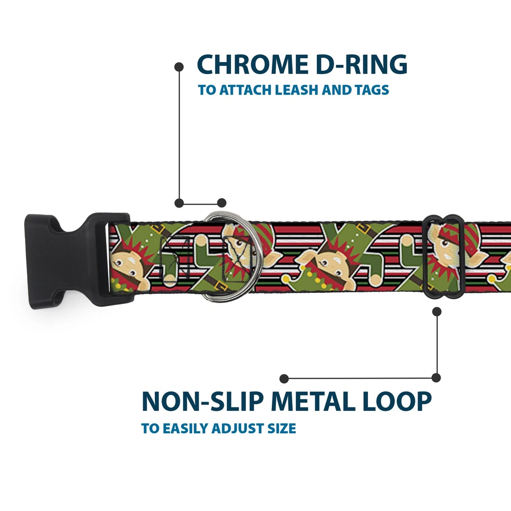Plastic Clip Collar Christmas Elves/Stripes Black/Red/White/Green Large 15-24"