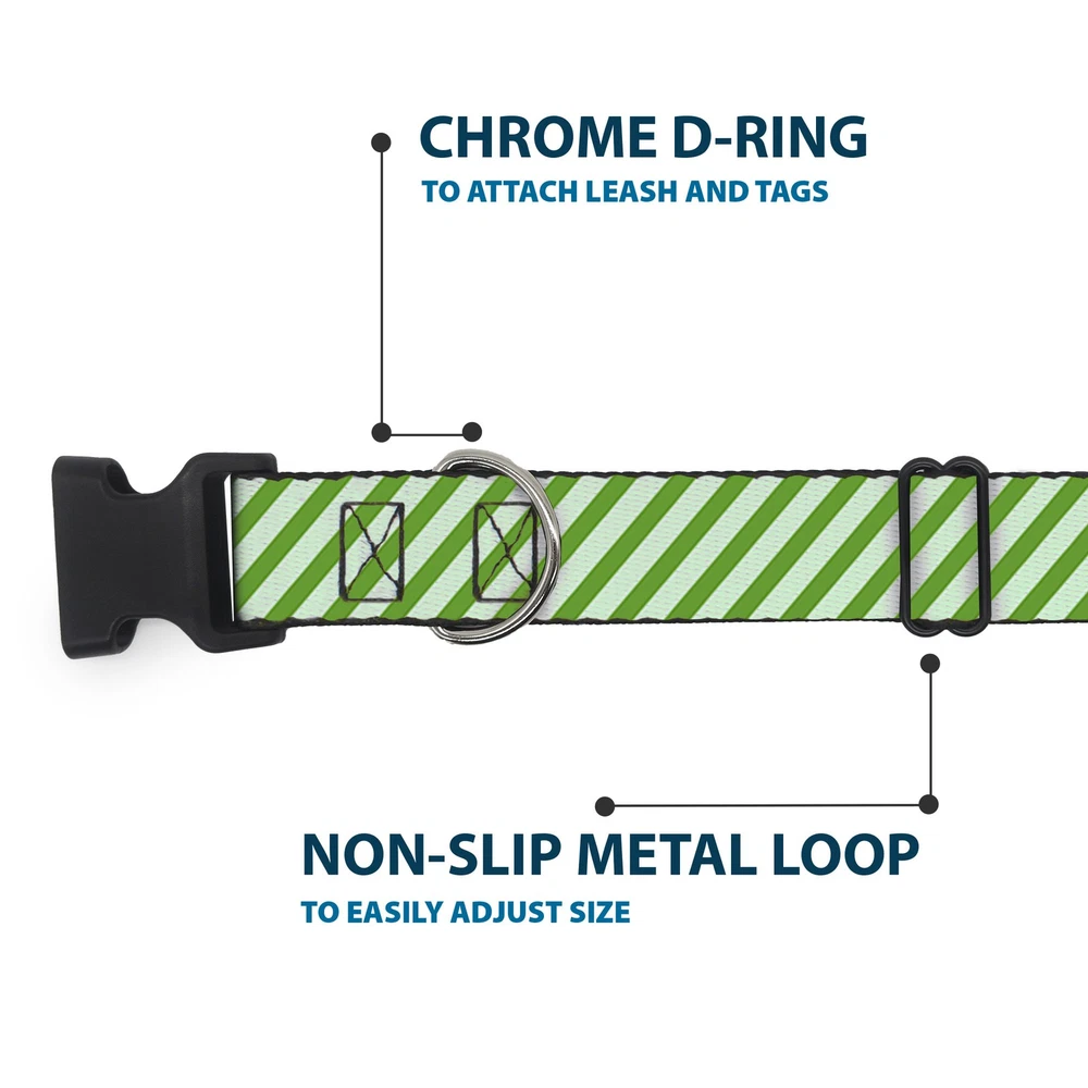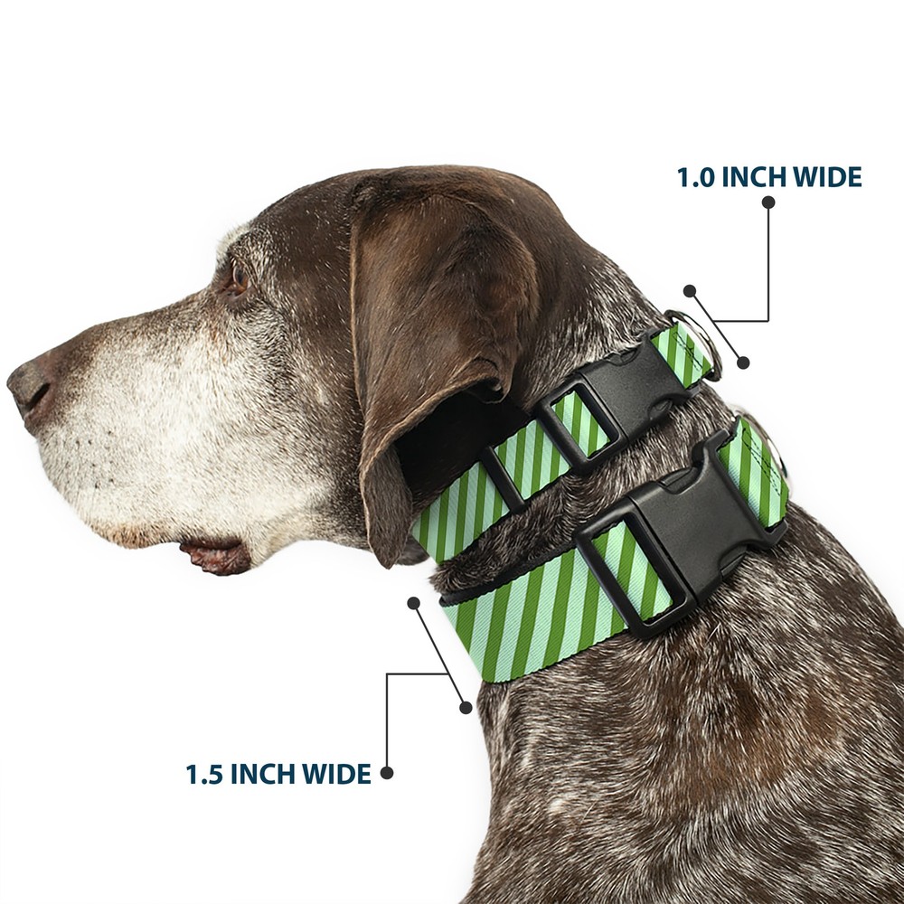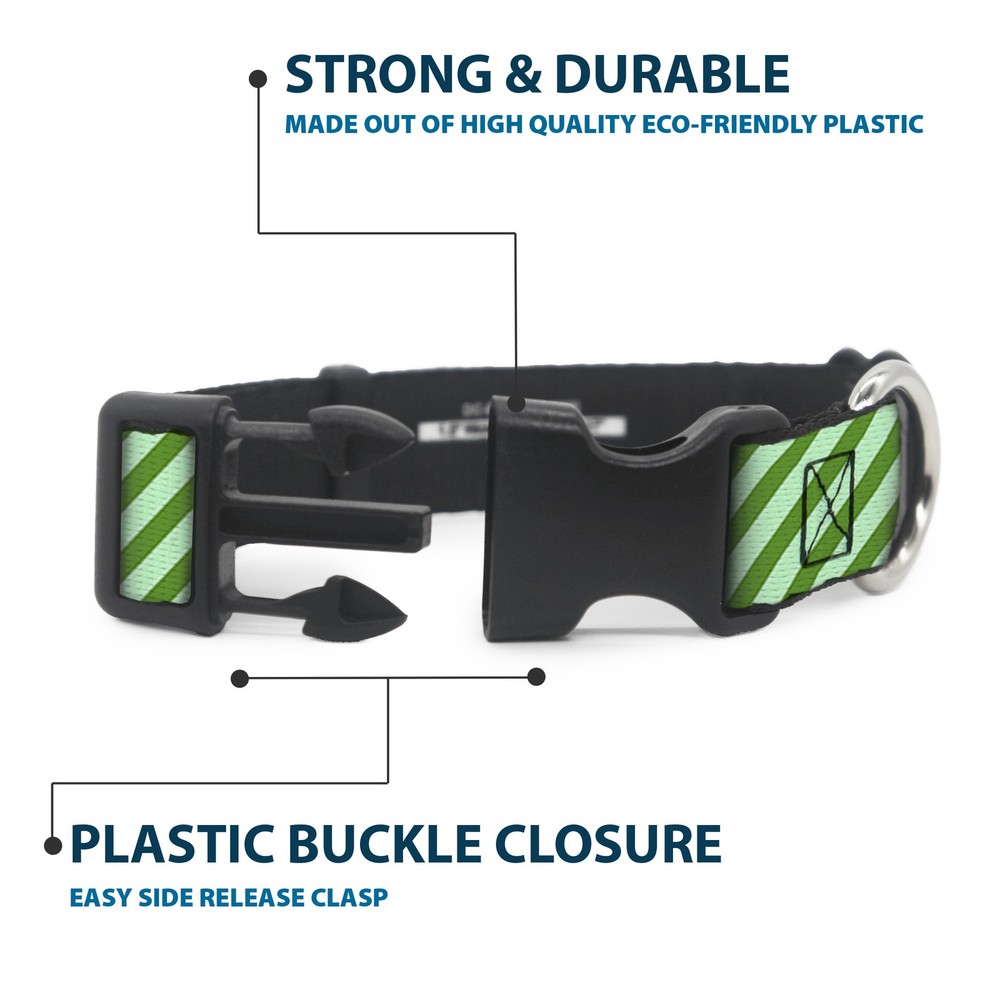 Plastic Clip Collar Diagonal Stripes Pastel Greens NARROW-Medium 8.5-12"