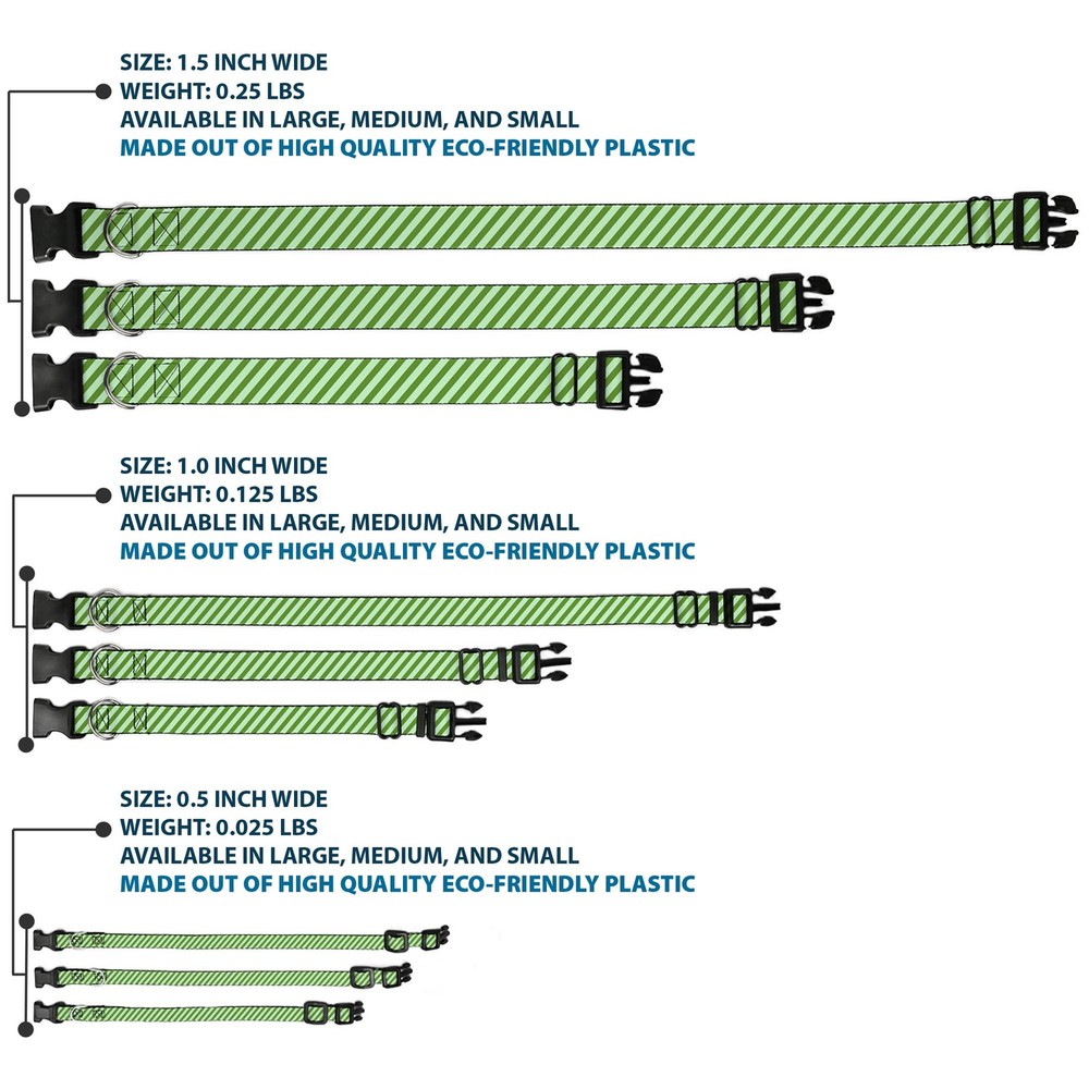 Item Weight: 17g MPN: W30484-0.5-M Dimensions: 12 x 0.5 x 1 inches; 0.6 ounces Pattern: Dog,Stripes Dog Breed: ‎All Breed Sizes Number of Items: ‎3620 Type: Dog Collar Plastic Clip Buckle Size: 1/2" Wide - Fits 8.5-12" Neck - Medium Item Width: 12mm Item Length: 304mm Material: Nylon Item Height: 25mm gtin13: 0700146616379 Title: Plastic Clip Collar Diagonal Stripes Pastel Greens NARROW-Medium Release Date: 03/16/2017 UPC: 0700146616379 Age Level: ‎All Life Stages Brand: Buckle-Down Designs Closure: Buckle Color: Green