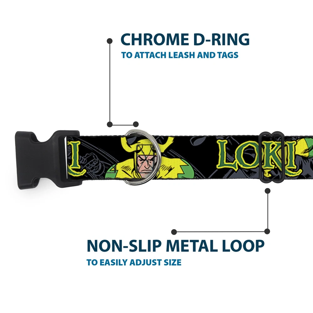Further Details Title: Plastic Clip Collar LOKI in Action Black/Gray/Yellow/Green Large 15-24" Condition: New Release Date: 03/19/2019 Item Weight: 60g Item Height: 25mm Age Level: All Life Stages Brand: Marvel Comics MPN: WAV028-1.0-L Item Length: 660mm Size: 1" Wide - Fits 15-24" Neck - Large Number of Items: 44984 Type: Dog Collar Plastic Clip Buckle Material: Polyester Pattern: Dog Dimensions: 26 x 1 x 1 inches; 2.12 ounces Item Width: 25mm Description: Vibrant and bold, this beautiful, polyester dog collar is made to show off your dog's unique style through all the seasons. With an overengineered plastic buckle and strong D-ring, this durable collar can hold up to whatever your dog can dish out. This product is officially licensed by Marvel Comics. Color: Yellow Dog Breed: All Breed Sizes Closure: Buckle Fits 15-24" neck size and is 1" wide. Vibrant and bold, this beautiful polyester dog collar is made to show off your dog's unique style through all the seasons. With an overengineered plastic buckle and strong D-ring, this durable collar can hold up to whatever your dog can dish out. This product is assembled in the USA by Buckle-Down and is officially licensed by Marvel Comics. Matching leads/leashes available. Missing Information? Please contact us if any details are missing and where possible we will add the information to our listing.