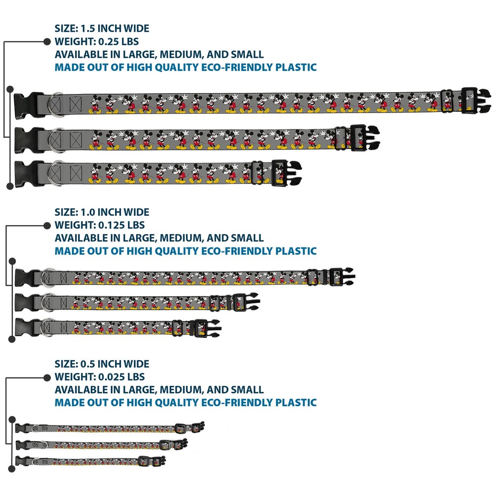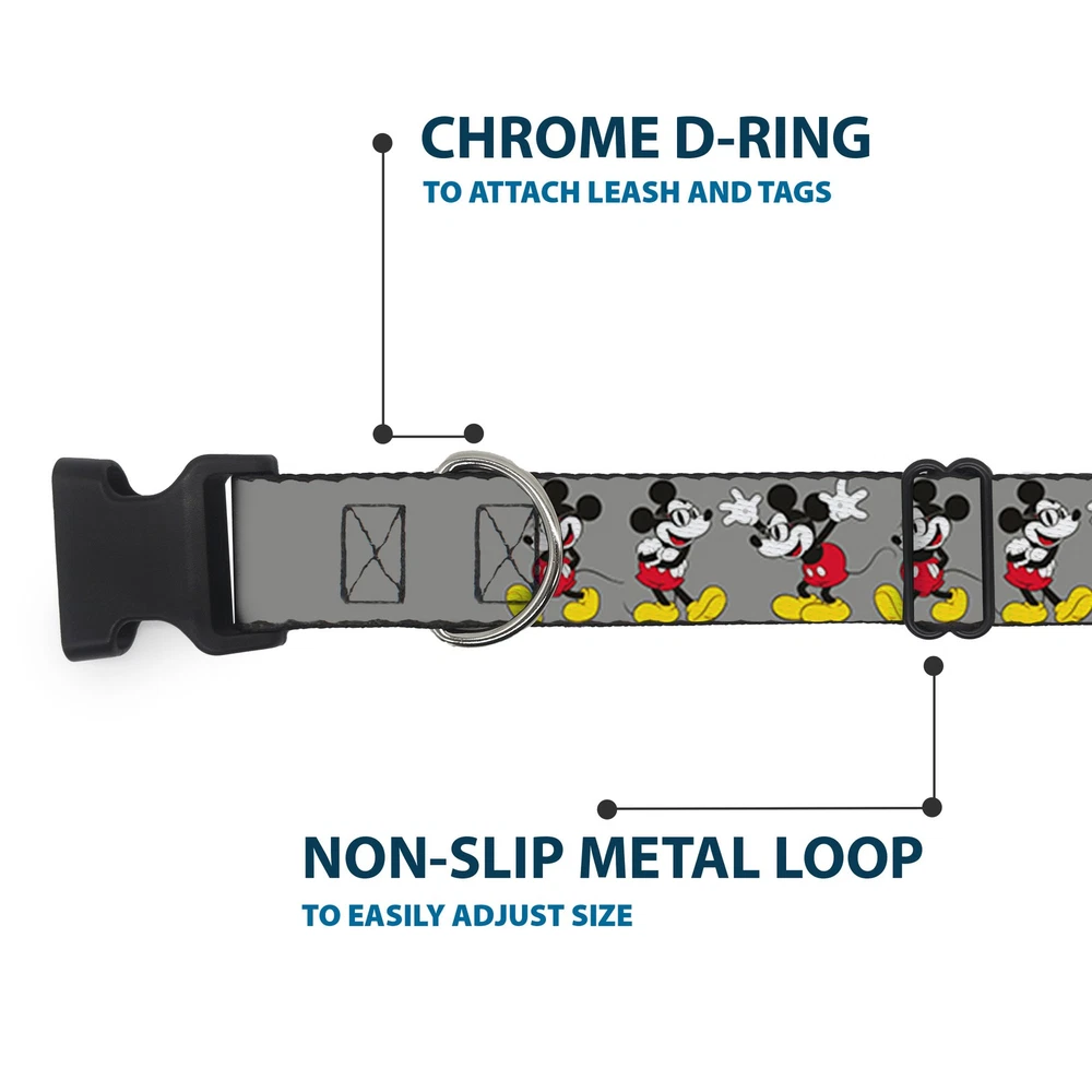 Plastic Clip Collar Mickey Mouse w/Glasses Poses Gray NARROW-Large 9.5-14.5"