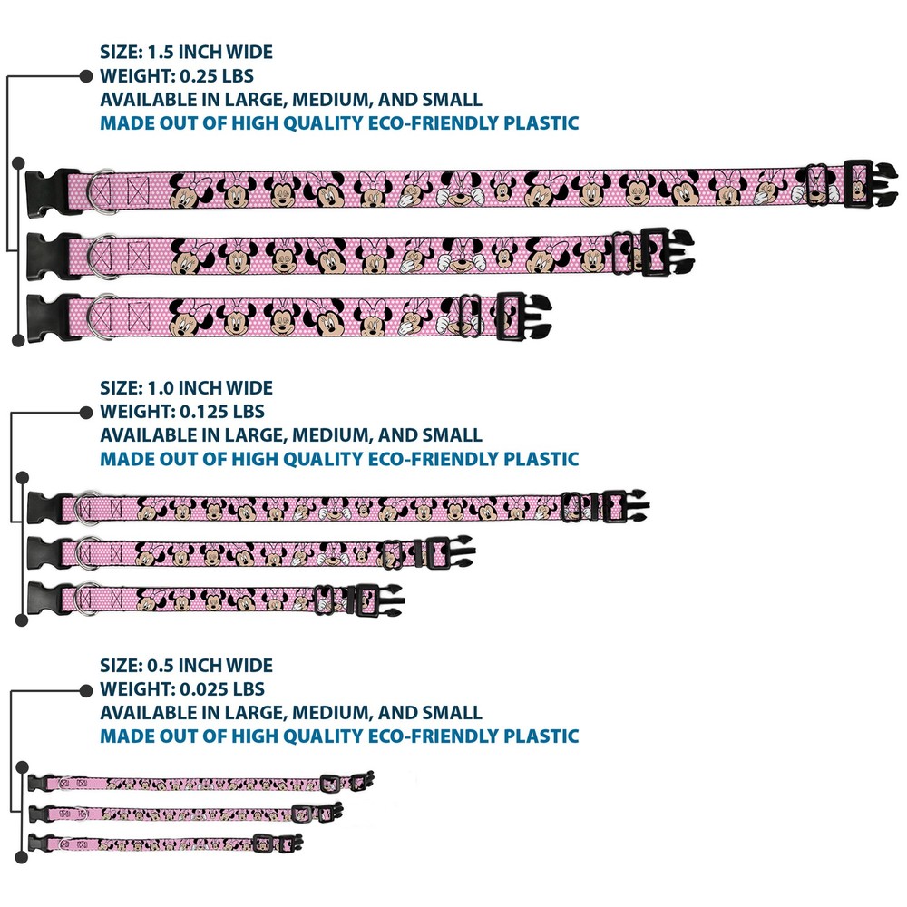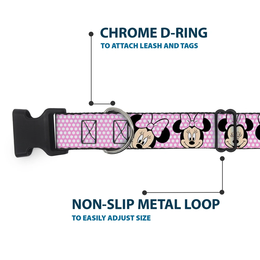 Plastic Clip Collar Minnie Mouse Expressions Polka Dot Pink/White WIDE-Medium 16