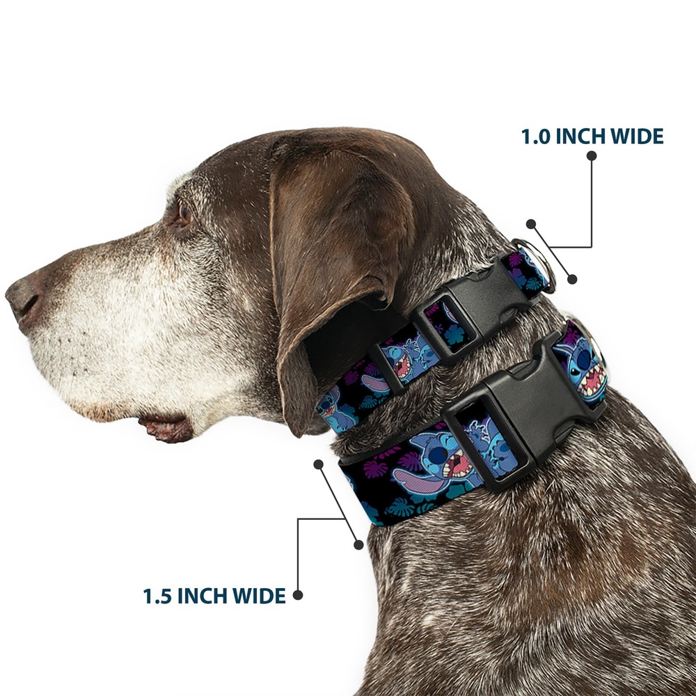 Further Details Title: Plastic Clip Collar Stitch 2-Expressions/2-Poses Tropical Flora Black/Purple-Blue Fade NARROW-Large 9.5-14.5" Condition: New Release Date: 11/22/2023 Item Weight: 18g Item Height: 25mm Age Level: All Life Stages Brand: Lilo & Stitch MPN: WDY264-0.5-L Item Length: 368mm Size: 1/2" Wide - Fits 9.5-14.5" Neck - Large Number of Items: 39698 Type: Dog Collar Plastic Clip Buckle Material: Polyester Dimensions: 14.5 x 0.5 x 1 inches; 0.64 ounces Closure: Buckle Item Width: 12mm Color: Blue Description: Vibrant and bold, this beautiful, polyester dog collar is made to show off your dog's unique style through all the seasons. With an over engineered plastic buckle and strong D-ring, this durable collar can hold up to whatever your dog can dish out. This product is officially licensed by Disney. Department: Pets Dog Breed: All Breed Sizes Fits 9.5-14.5" neck size and is 1/2 inch wide. Vibrant and bold, this beautiful polyester dog collar is made to show off your dog's unique style through all the seasons. With an over engineered plastic buckle and strong D-ring, this durable collar can hold up to whatever your dog can dish out. This product is assembled in the USA by Buckle-Down and is officially licensed by Disney. Matching leads/leashes available. Missing Information? Please contact us if any details are missing and where possible we will add the information to our listing.