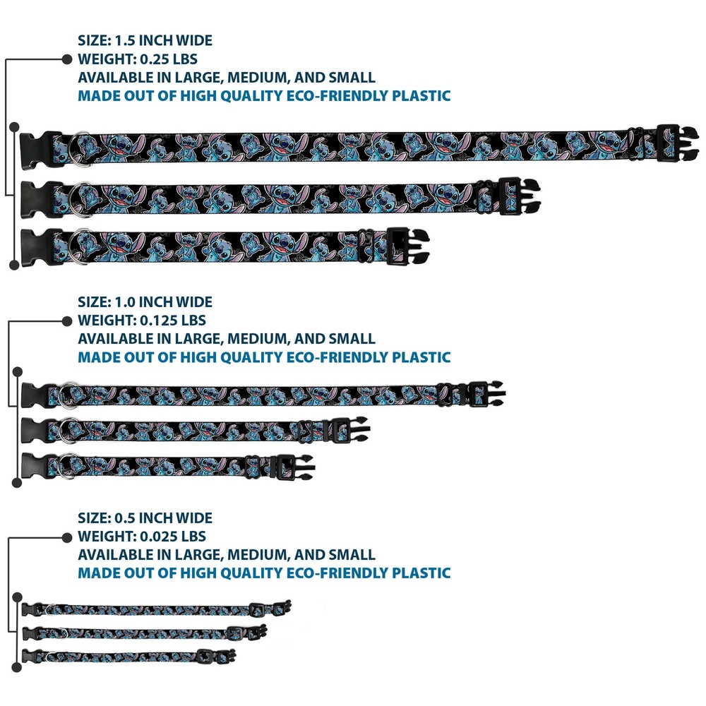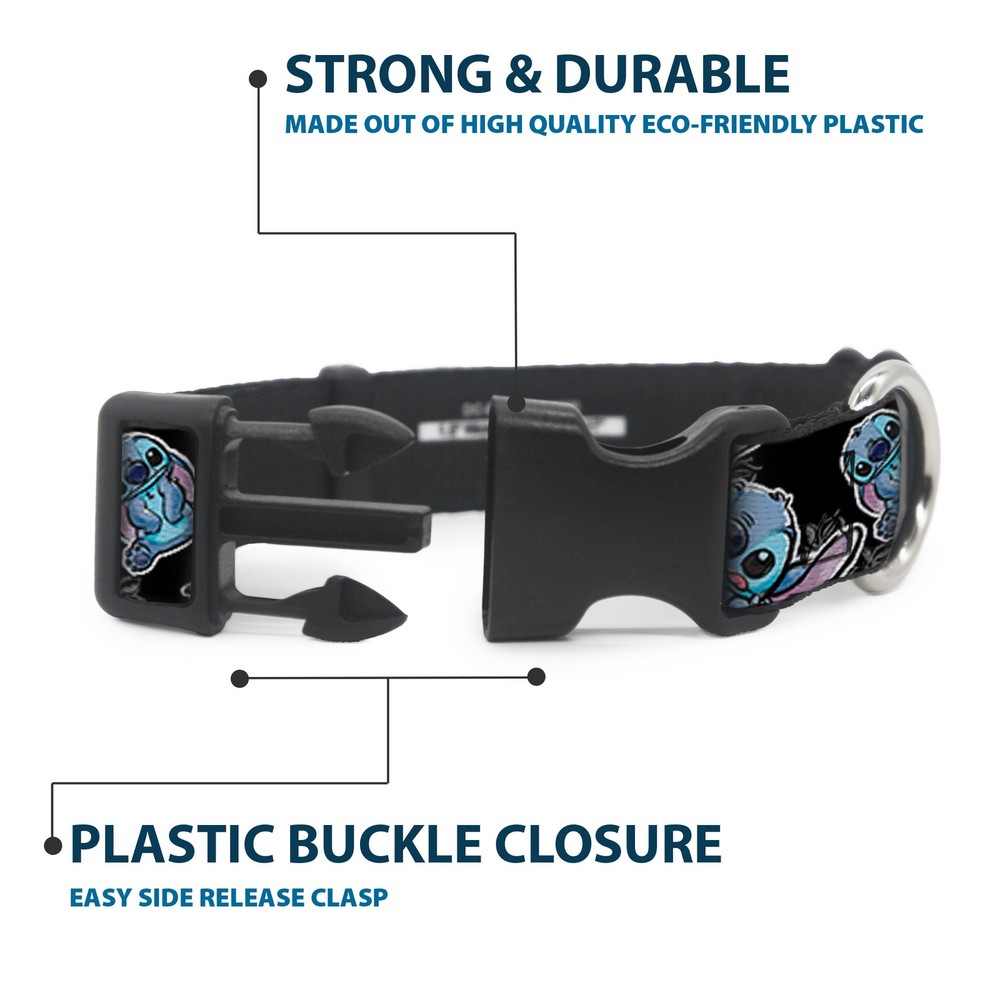 Further Details Title: Plastic Clip Collar Stitch Poses/Hibiscus Sketch Black/Gray/Blue Medium 11-16.5" Condition: New Description: Vibrant and bold, this beautiful, polyester dog collar is made to show off your dog's unique style through all the seasons. With an overengineered plastic buckle and strong D-ring, this durable collar can hold up to whatever your dog can dish out. This product is officially licensed by Disney. Age Level: All Life Stages Color: Blue Brand: Lilo & Stitch Closure: Buckle MPN: WDY063-1.0-M Item Weight: 51g Material: Plastic, Polyester Dimensions: 17 x 1 x 1 inches; 1.83 ounces Dog Breed: All Breed Sizes Item Length: 431mm Item Width: 25mm Item Height: 25mm Size: 1" Wide - Fits 11-16.5" Neck - Medium Number of Items: 38433 Type: Dog Collar Plastic Clip Buckle Pattern: Dog Release Date: 03/16/2017 Fits 11-16.5" neck size and is 1" wide. Vibrant and bold, this beautiful polyester dog collar is made to show off your dog's unique style through all the seasons. With an overengineered plastic buckle and strong D-ring, this durable collar can hold up to whatever your dog can dish out. This product is assembled in the USA by Buckle-Down and is officially licensed by Disney. Matching leads/leashes available Missing Information? Please contact us if any details are missing and where possible we will add the information to our listing.