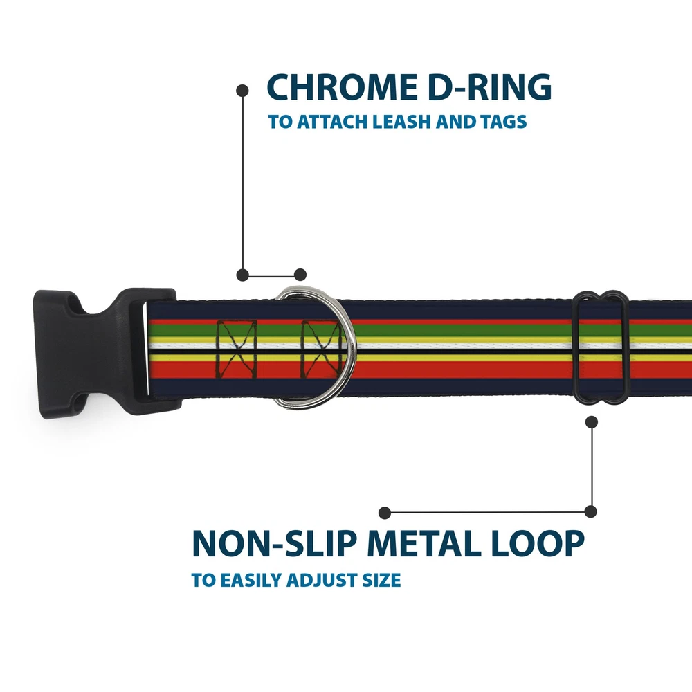 Further Details Title: Plastic Clip Collar Stripes Navy/Red/Yellow/Black/White/Green Small 9.5-13" Condition: New Release Date: 03/16/2017 Description: Vibrant and bold, this beautiful, polyester dog collar is made to show off your dog's unique style through all the seasons. With an overengineered plastic buckle and strong D-ring, this durable collar can hold up to whatever your dog can dish out. This product is officially licensed by Buckle-Down. Item Height: 25mm Item Width: 25mm Item Weight: 65g Age Level: All Life Stages Brand: Buckle-Down Designs Color: Multicolor Item Length: 381mm Material: Nylon Number of Items: 18429 Type: Dog Collar Plastic Clip Buckle Dimensions: 15 x 1 x 1 inches; 2.3 ounces Pattern: Dog,Stripes Size: 1" Wide - Fits 9.5-13" Neck - Small Closure: Buckle MPN: W34530-1.0-S Dog Breed: All Breed Sizes Fits 9.5-13" neck size and is 1" wide. Vibrant and bold, this beautiful polyester dog collar is made to show off your dog's unique style through all the seasons. With an overengineered plastic buckle and strong D-ring, this durable collar can hold up to whatever your dog can dish out. This product is assembled in the USA by Buckle-Down and is officially licensed by Buckle-Down. Matching leads/leashes available. Missing Information? Please contact us if any details are missing and where possible we will add the information to our listing.