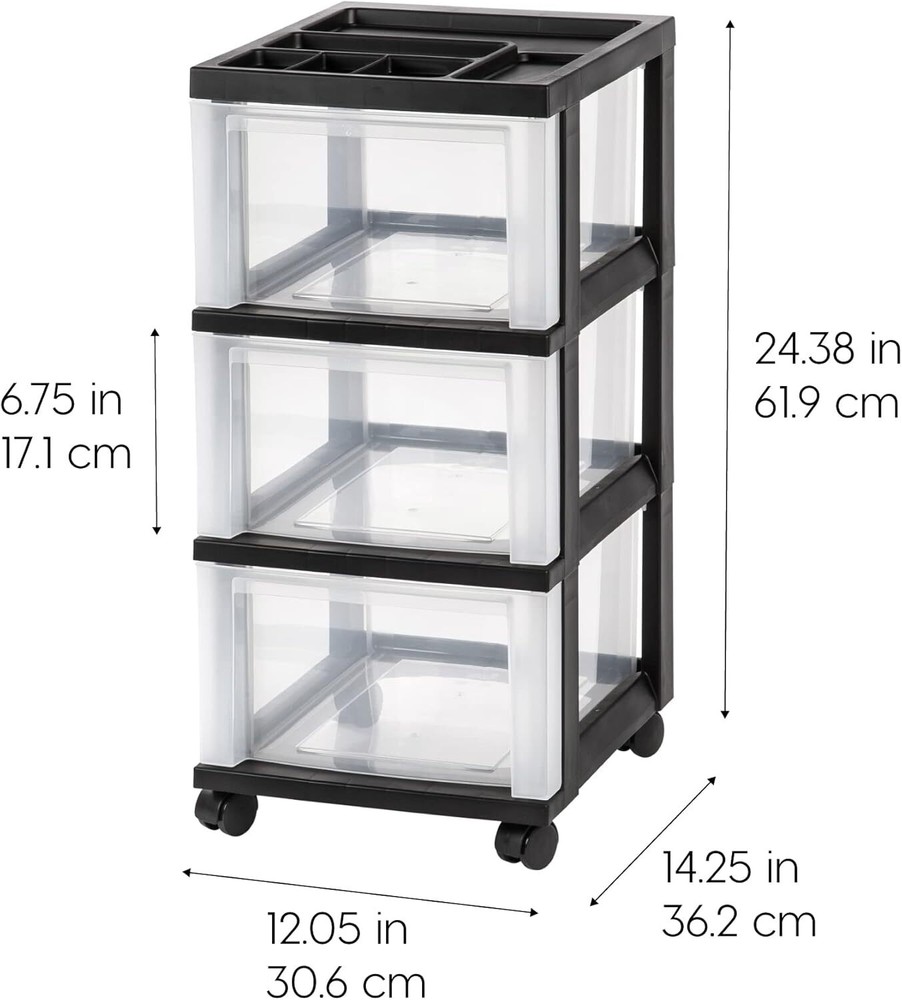 About this item MULTI-PURPOSE ORAGNIZER: Store a variety of household items that are frequently used in the office, closet, under-desk, kid’s room, craft room, nursery, or dorm room MOBILE STORAGE SOLUTION: Removable wheels are included, can be attached to the foot of the chest so you can move it around smoothly, or remove them for secured placement MADE IN USA: High-quality materials are used for our domestically-manufactured products. The sturdy plastic makes these durable, and the smooth glide drawers give you easy access to contents. We use recyclable material, so our products are green-circle certified. DRAWERS: Drawer stops are attached on both sides of drawers to prevent drawers from falling out. Drawer dimension: 9.5”L X 12.5”W X 6.75”H Dimensions: 14.25"L x 12.05"W x 25.94"H User guide Required Assembly No Measurements Item Weight 5.94 Pounds Item Dimensions D x W x H 14.25"D x 12.05"W x 24.38"H Additional details Number of Drawers 2 Color Black