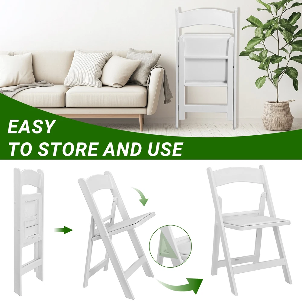 listing template VISIT OUR STORE SIGH UP FOR EMAIL Plastic Folding 4PCS Comfortable Chairs Event Wedding Party Camping Dining Seats Introductions: Experience the perfect blend of comfort and portability with our Folding Chair with Padded Seat. Featuring an ergonomic design and soft PVC leather cushions, these chairs ensure lasting comfort even during long events. Their foldable design allows for easy storage and transport, making them an ideal choice for family gatherings, outdoor camping, weddings, and more. Crafted from durable, weather-resistant materials, these stylish chairs are perfect for both indoor and outdoor use, offering a versatile seating solution for any occasion. Features: 1. Exceptional Comfort: With ergonomic seat and backrest, complemented by soft PVC leather cushions, these chairs are perfect for long hours of sitting, ensuring your guests remain comfortable throughout any event. 2. Effortless Storage and Transport: The folding design allows the chair to open and close in seconds, making storage and transportation a breeze. Whether you're hosting a family gathering, going camping, or planning a celebration, these lightweight chairs are easy to carry and store. 3. Weather-Resistant Durability: Constructed from waterproof and moisture-proof resin material, these chairs offer long-lasting use both indoors and outdoors. 4. Robust Triangular Structure: Engineered to meet the needs of different body shapes, these chairs provide outstanding stability and each chair supports up to 280 lbs. 5. Versatile and Stylish Design: With a simplistic modern appearance, these chairs enhance any setting. Perfect for decorating your garden, embellishing your balcony, or adding elegance to indoor and outdoor events like weddings and church functions. Specifications: 1. Material: PP, Pearl Cotton, PVC Leather 2. Color: White 3. Product Dimensions: (17.5 x 17.1 x 30.7) in / (44.5 x 43.5 x 78) cm 4. Net Weight: 42.3 lbs / 19.2 kg Package Includes: 4 x Folding Chairs Shipping Policy 1. Ship worldwide from New Jersey by reliable shipping companies -- USPS, UPS, FEDEX, DHL, etc., and only to VERIFIED PAYPAL ADDRESS. Transport Delivery ETA. Package handling only takes 1 business day at our warehouse, so please make sure entering correct payment and shipping information before checking out. Once your payment is completed, we are not going to accept any more changes to your order. 2. International Buyers – Please Note: a. Import duties, taxes and charges are not included in the item price or shipping charges. These charges are the buyer's responsibility. b. Please check with your country's customs office to determine what these additional costs will be prior to bidding/buying. 3. Please check your shipping address carefully before checkout, it can't be changed if order completed. 4. Orders placed on weekend will be shipped within 2 days.Notification of shipment with tracking number will be sent to buyers. 5. Standard shipping: 2-7 business days Expedited Shipping: 2-3 business days One-day Shipping: 1 business day International shipping: Varies 6.Ship within 1 business day once payment completed. Notification of shipment with tracking No. will be sent to buyer. 7.We offer discounts for combine shipping. Please contact us first if you need combine shipping, and an invoice with discount will be sent to you. 8.Please allow 5 business days for delivery to US destinations on any eBay orders and 14 business days for delivery to any International destinations. We highly recommend our buyer choose priority/expess mail for international delivery which is much more stable. Return Policies 1. Refunds given only if item DOA and cannot be replaced via PAYPAL . If so, Please contact us with 5 days since you receive the item and and return to us within 30 days from the delivery date for exchange or refund. 2. If you need return, please contact our customer service representative, let us know the detailed problem and send us some pictures for confirmation. Payment Payment should be sent within 8(EIGHT) days of auction closing. Feedback If you are dissatisfied for any reason, please do not be quick to leave negative/neutral feedback. We work hard to make sure EVERY CUSTOMER 100% SATISFIED and resolve any problem for you. Work Time Work Time: Monday to Saturday About Us | Newsletter| Feedback| Contact Us Copyright © 2022 LikeDeal. All rights reserved. 无标题文档 Plastic Folding 4PCS Comfortable Chairs Event Wedding Party Camping Dining Seats Introductions: Experience the perfect blend of comfort and portability with our Folding Chair with Padded Seat. Featuring an ergonomic design and soft PVC leather cushions, these chairs ensure lasting comfort even during long events. Their foldable design allows for easy storage and transport, making them an ideal choice for family gatherings, outdoor camping, weddings, and more. Crafted from durable, weather-resistant materials, these stylish chairs are perfect for both indoor and outdoor use, offering a versatile seating solution for any occasion. Features: 1. Exceptional Comfort: With ergonomic seat and backrest, complemented by soft PVC leather cushions, these chairs are perfect for long hours of sitting, ensuring your guests remain comfortable throughout any event. 2. Effortless Storage and Transport: The folding design allows the chair to open and close in seconds, making storage and transportation a breeze. Whether you're hosting a family gathering, going camping, or planning a celebration, these lightweight chairs are easy to carry and store. 3. Weather-Resistant Durability: Constructed from waterproof and moisture-proof resin material, these chairs offer long-lasting use both indoors and outdoors. 4. Robust Triangular Structure: Engineered to meet the needs of different body shapes, these chairs provide outstanding stability and each chair supports up to 280 lbs. 5. Versatile and Stylish Design: With a simplistic modern appearance, these chairs enhance any settin