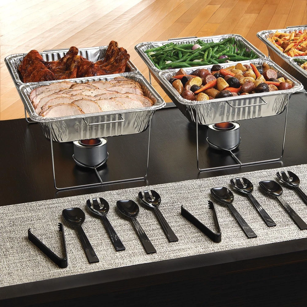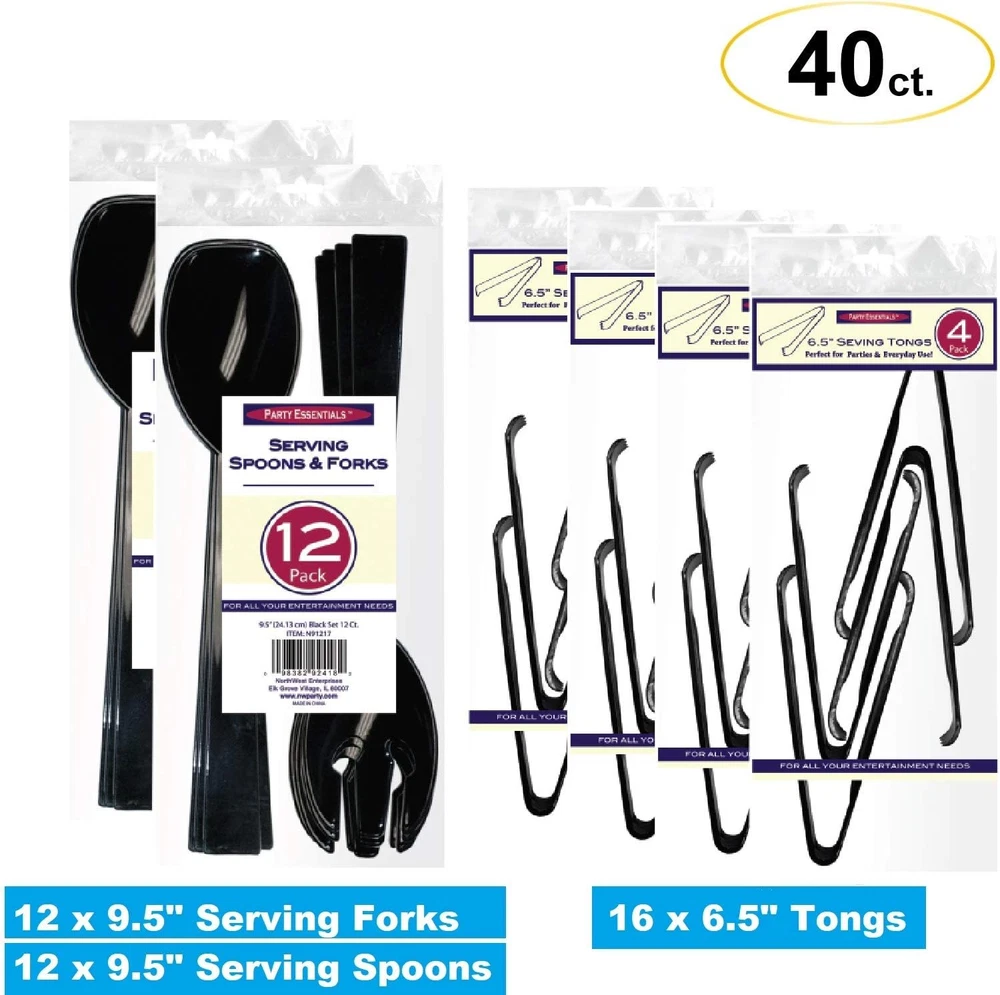 Plastic Party Buffet Serving Utensils Kit, Spoons/Forks/Tong, 40-Piece, Black