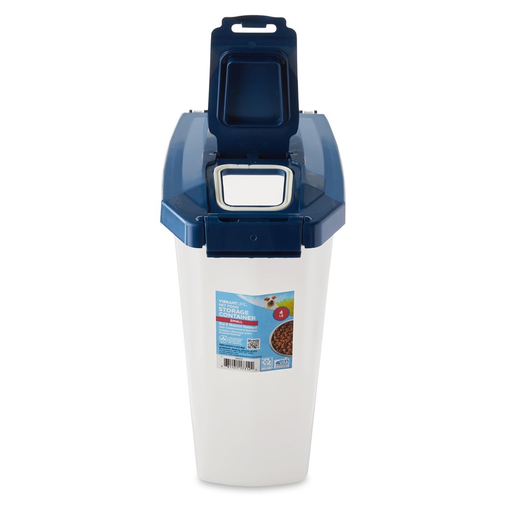 Plastic Dog Food Storage Container with Locking Lid, Extra-Large, 50 lb The Pet Food Storage Container is the perfect solution for storing your pet's food or treats. Made from a minimum of 25 percent recycled material, you can feel good knowing the main compartment is food safe. This extra-large container features rubber seals on the lid to help maintain freshness and roller wheels on the bottom for quick and easy transit from one room to another. Plus, it's bug and moisture resistant! With a 50-pound storage capacity, you can buy food in bulk knowing you have enough space to store it. Pet food storage just got a little easier with the Pet Food Storage Container! Pet Food Storage Container, Extra Large, 50 lb: 50-lb storage capacity Made with a minimum of 25% recycled materials Features rubber seals on lid for freshness and roller wheels on bottom for easy transit Bug and moisture resistant Main compartment is food safe