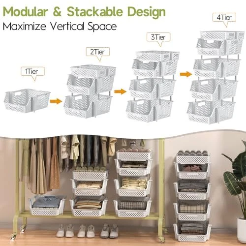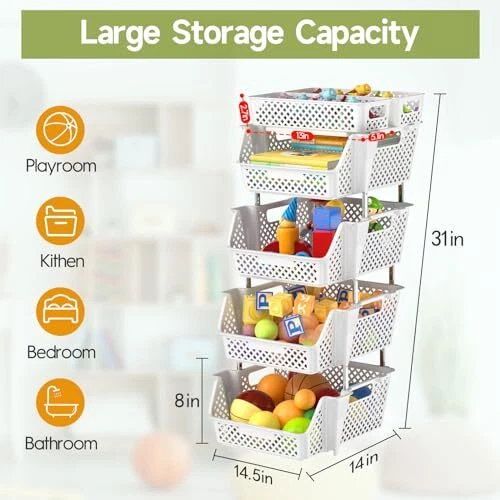 Return Policy Fast Delivery Trusted seller Plastic Stackable Storage Bins 4 Tier, Large Capacity Multi-Functional Storage Containers Shelves for Organizing Food, Closet, Kitchen, Office, Bathroom, Playroom, Kitchen and Pantry Organization Product Description Large Capacity: These 4-tier Upgraded stackable storage bins are convenient for storing your items such as t-shirts, shoes, clothes, toys, snacks, books, files, etc. It’s versatile enough to be used as a bathroom organizer for toiletries or skincare, a snack organizer, a pantry organizer for food, drink, and more, as well as a desk office organizer and kitchen spice organizer. The basket's open design makes it easy to view and retrieve items. Stackable Design: Customize your storage needs with our adjustable tier stackable storage containers. Stack 4, 3, or 2 layers easily to fit your preferences. It maximizes space savings by utilizing vertical space and the top storage baskets allow for more space usage. You can flexibly use our storage organizer for house organization and storage according to your needs. Multi-Functional: Our stackable bins are versatile and convenient, making them suitable for storing a wide range of items, such as toys, clothes, snacks, vegetables, fruit, onions, potatoes, and more. It can be used in various settings, including bedrooms, playrooms, storage rooms, kitchens, bathrooms, living rooms, offices, and other places. With a modern look, they can be integrated into various household styles perfectly Heavy Duty & Sturdy: The storage bins for shelves are made of high-quality plastic and are easy to clean with a damp cloth. The metal pole is made of waterproof and rust-proof stainless steel. These materials ensure durability and longevity, providing you with long-lasting storage solutions that can withstand daily wear and tear Perfect Size & : Stackable storage bins are the perfect size for pantry shelves, under-sink storage, toy storage, office, bathroom drawers, makeup, and craft organization. All the items are packed in a sturdy colorful box making it a great idea for a housewarming, Mother's Day, or a Christmas gift. We are dedicated to addressing any product issues, if you ever have any problem, just contact us for help or a free replacement Shipping Returns Payment Shipping Shipping is FREE to all addresses other than APO/PO boxes in the lower 48 states. All our stock ships from US-based warehouses. Shipped via USPS or UPS (depending on location and package weight) Unless stated otherwise, all orders will ship within 24-72 hours of your payment being processed. Check our feedback to see the great reviews of FAST shipping we offer. Returns Seller does not accept returns Payment We currently accept payment via eBay managed payments only. Once payment is cleared, we will dispatch your shipment within 1-3 business days. Please refer to the "Shipping" tab for more information regarding shipping speed to your destination.