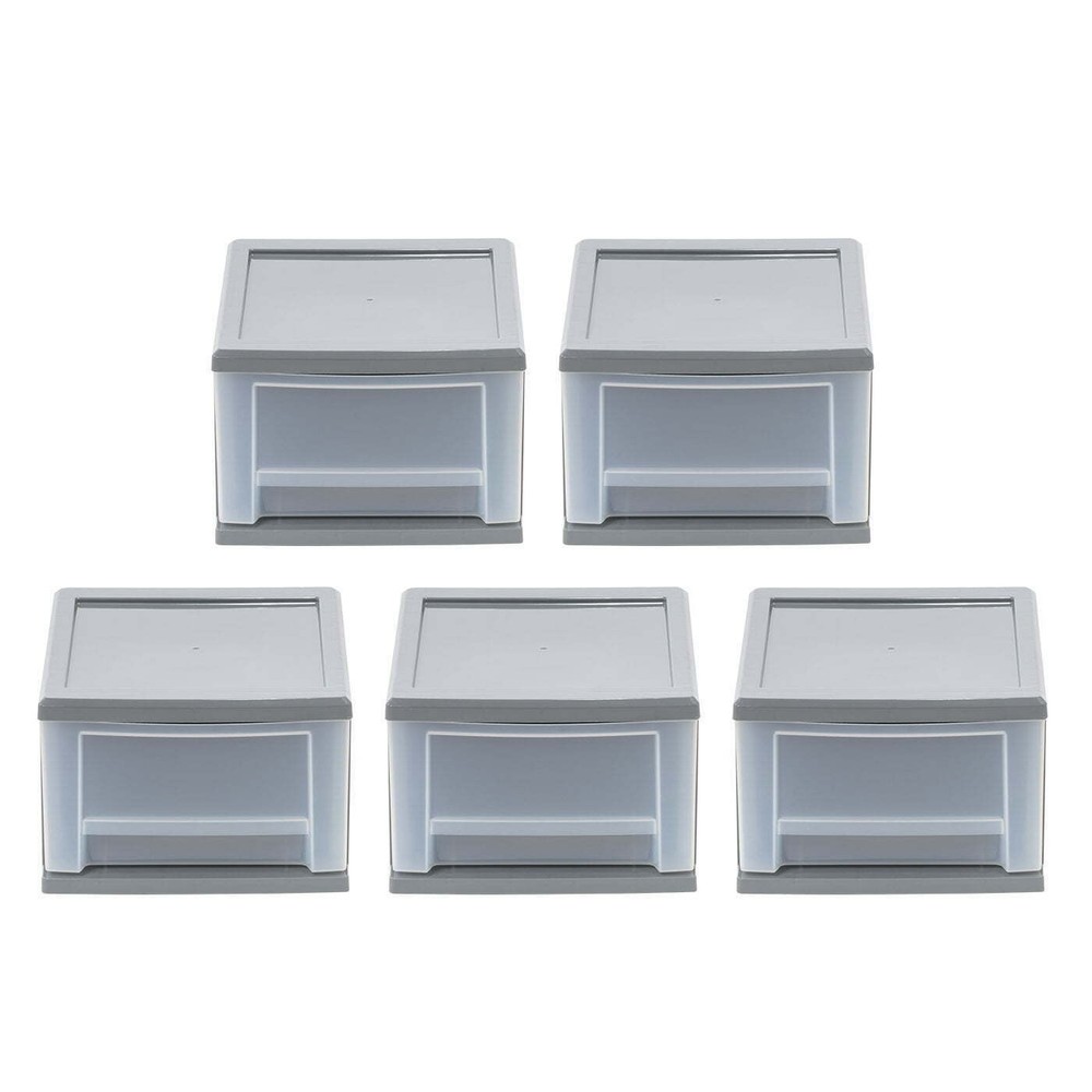 HomePlastic Storage Drawer 5 Pack Stackable Desktop Organizer 7 Qt Home Office New