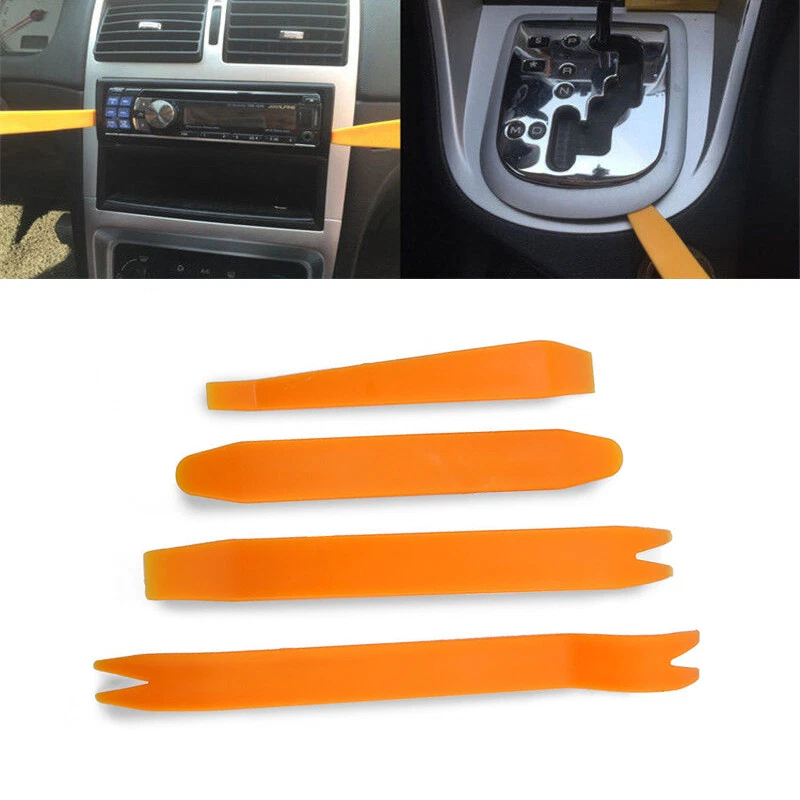 Car Removal Open Tools Auto Door Clip Panel Radio Trim Dash Audio Installer Features: 100% brand new and high quality. Quantity: a set car panel removal tool (include 4pcs) Useful pry tool for safely removing and installing car audio,exterior and interior trim,dash,door panel avoid scratching your car The tool could efficiently reduce the concave and protruding scars left by using the screw knife to remove It could reduce the abrasion possibility of inner car decorating The tools are designed to fit any car model Material: Plastic Note: Please operating after the car is stopped and completely flameout Do not let your children play with the tool Package included: 4 x Car Panel Removal Tools