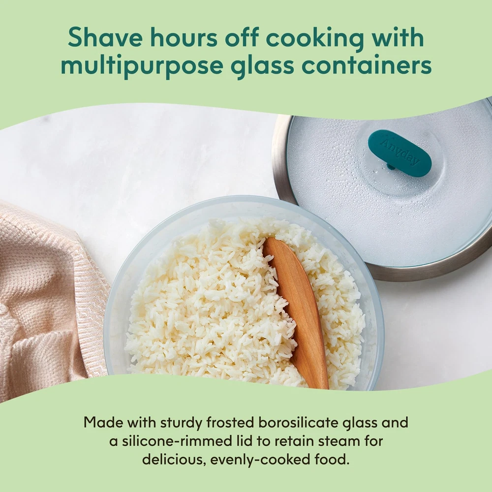 Introducing the Microwave Cookware 2-Piece Large Deep Dish—the ultimate solution for effortless cooking! Are you tired of cold spots in your reheated meals and mundane leftovers? This stylish yet practical glass meal prep container is designed to keep your food fresher for longer while ensuring even heating. Whether you need a microwave rice cooker, microwave egg cooker, microwave bacon cooker, microwave steamer for vegetables, sturdy soup bowls, pasta bowls, or freezer storage containers, glass containers with lids do it all! Crafted from premium frosted borosilicate glass, food containers with lids combine elegance and functionality. Our robust cooking and baking dishes seamlessly transition from microwave to table to dishwasher—making your life so much easier. This Large Deep Dish (8 cups, 7.9" x 4.2", 3 lbs) is perfect for crafting one-dish meals, exquisitely cooked grains, hearty soups, and more. What sets cookware apart? The silicone-rimmed glass lids trap steam for moist, flavor-packed meals while effectively ventilating to prevent pressure build-up. Enjoy healthier cooking—microwave-prepared meals retain more nutrients than those cooked via traditional methods according to research from esteemed institutions such as Harvard and Cornell. Enjoy delightful, nourishing dishes in record time with the help of our microwave-safe glass meal prep containers with lids. Designed for the modern kitchen, our versatile meal prep glass containers with lids are not only perfect for cooking but work wonderfully as elegant serving and food storage containers. Plus, they are dishwasher-safe! Spend less time washing dishes and more time savoring flavorful meals with your loved ones. Unlock a world of culinary creativity with clear food storage glass dishes. Whether making a tasty side dish, a delectable dessert, or a complete meal, this cookware is a kitchen essential. The Dish That Does It All: Made of sturdy frosted borosilicate glass, food storage containers with lids make it easy to enjoy moist, evenly cooked meals straight from the microwave without having to worry about warping or microplastics Silicone-Rimmed Glass Lids: Our splatter-blocking, airtight lids feature a steam-trapping silicone rim that keeps food moist and a silicone knob that vents excess steam; Press the knob down to neatly stack and store these glassware storage containers Hassle-Free Healthy Meals: Effortlessly transform raw ingredients into mouthwatering, nourishing meals in record time with this microwave-safe cookware set; Cooking homemade meals in the microwave is perfectly safe and preserves important nutrients Steam, Serve & Stack: Whether you need a vegetable steamer, glass mixing bowl, sturdy lunch container, or elegant serving bowl, our dishwasher-safe glass food storage dishes do it all; Cook, serve, neatly stack and store meals with minimal mess Large Deep Dish: This convenient lidded glass storage container perfectly caters to your cooking needs, whether steaming, oven roasting, reheating, serving, or storing food; Craft delicious one-dish meals, perfectly cooked rice, and hearty soups