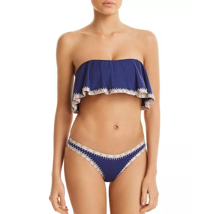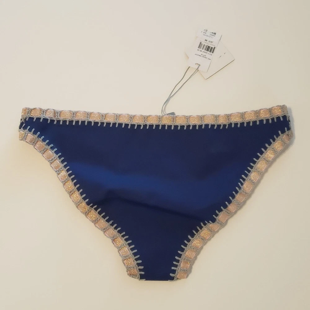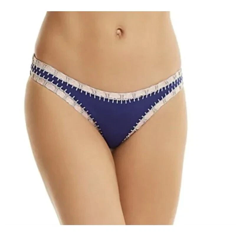 Platinum Swimwear Crochet Trim Scoop Bikini Swim Bottom Navy Blue Women's Medium
