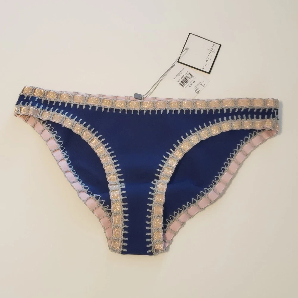 Swim Bottom Style: Bikini Size Type: Regular Brand: Platinum Department: Women Type: Bottom Size: M Color: Blue Material: Nylon, Spandex Accents: Crochet