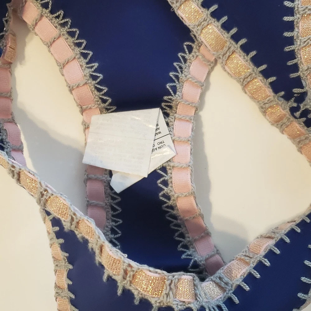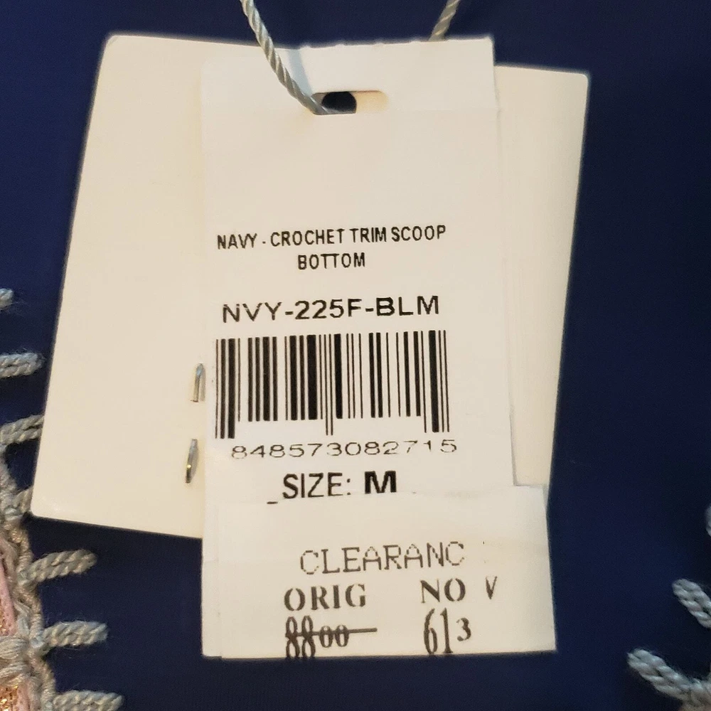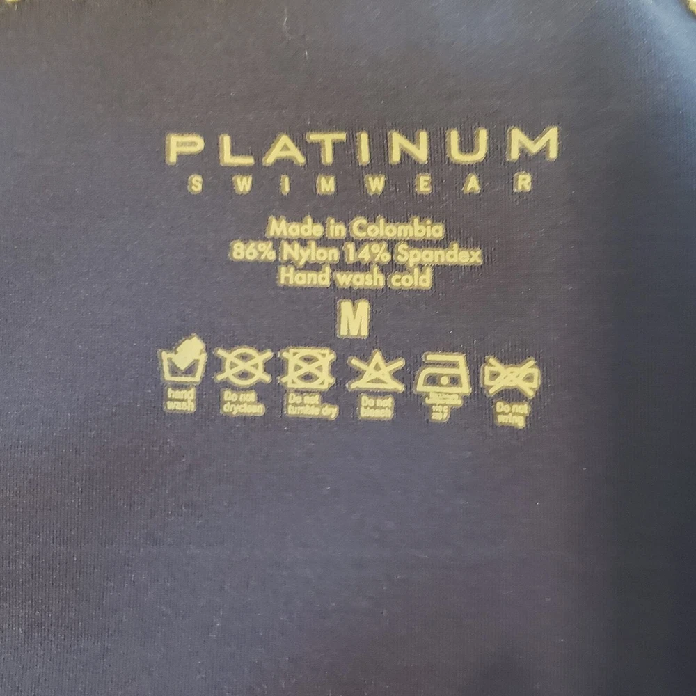 Platinum Swimwear Crochet Trim Scoop Bikini Swim Bottom Navy Blue Pull-on style Moderate coverage Contrast metallic banded trim with whipstitched detail Bottom only Nylon Spandex Hand wash cold Size M Medium Approximate Measurements: waistband - 14.5 length - 8.5 New with tags, no flaws. I have lots of swim pieces, and accessories. Please take a look and bundle. Smoke free, dog friendly home. summer beach trendy island travel vacation vaca bohemian coastal swim crisp breezy effortless resort cruise