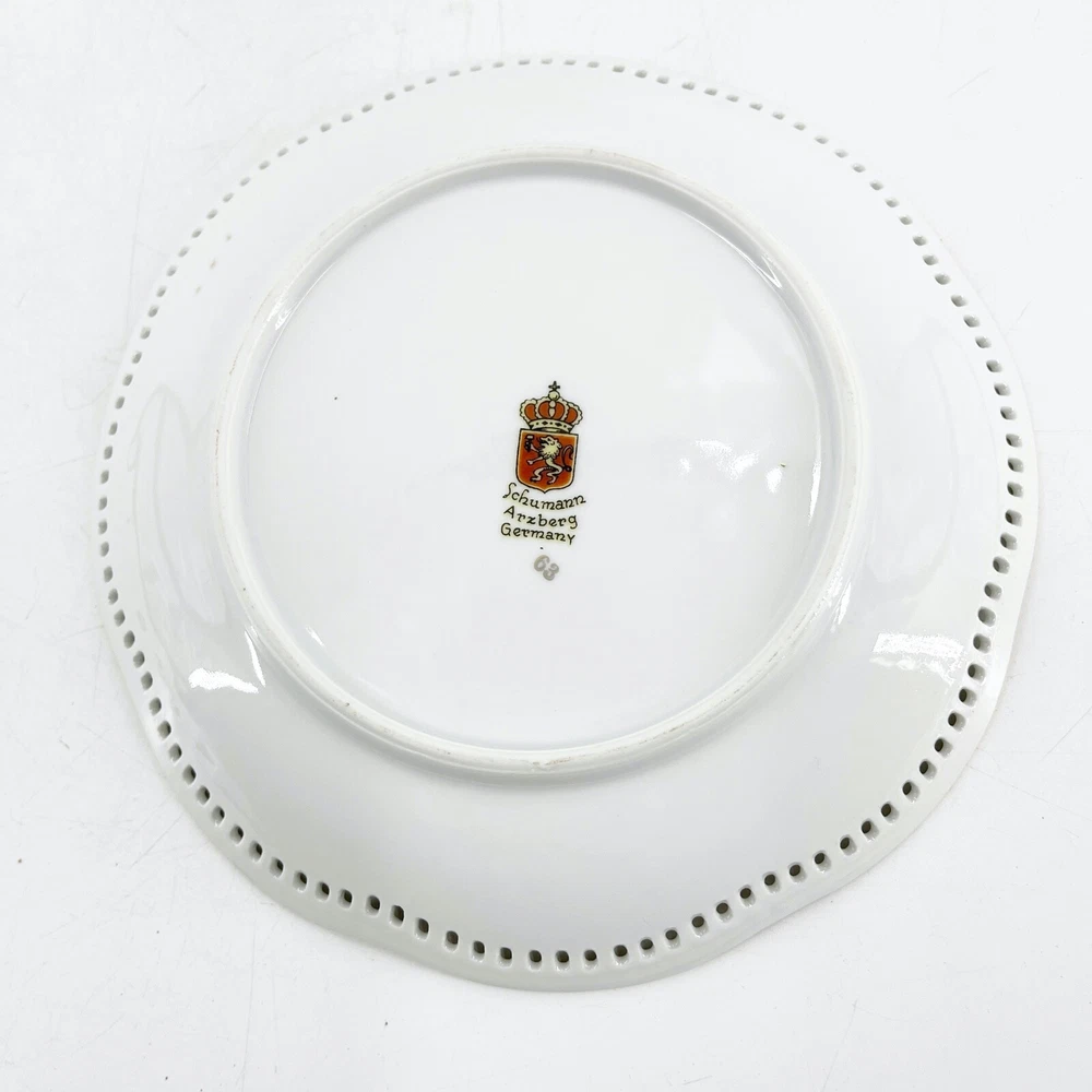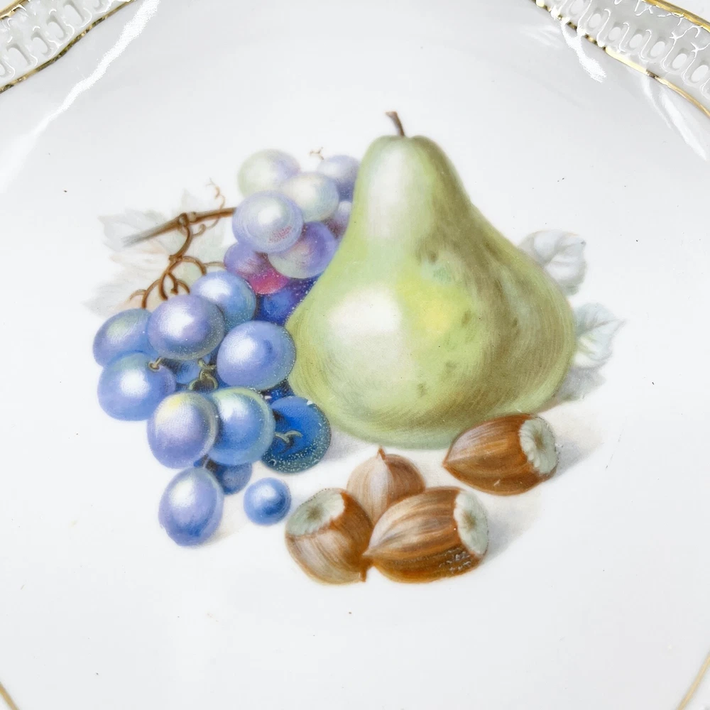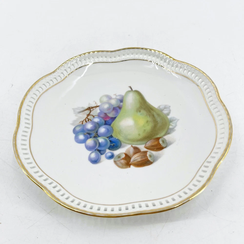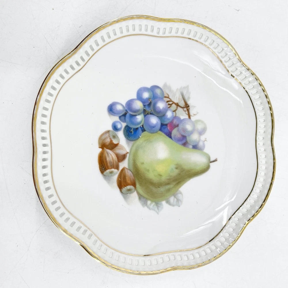 HomePlato con patrón de fruta SCHUMANN reticulado festoneado borde dorado 7”, Alemania, excelente