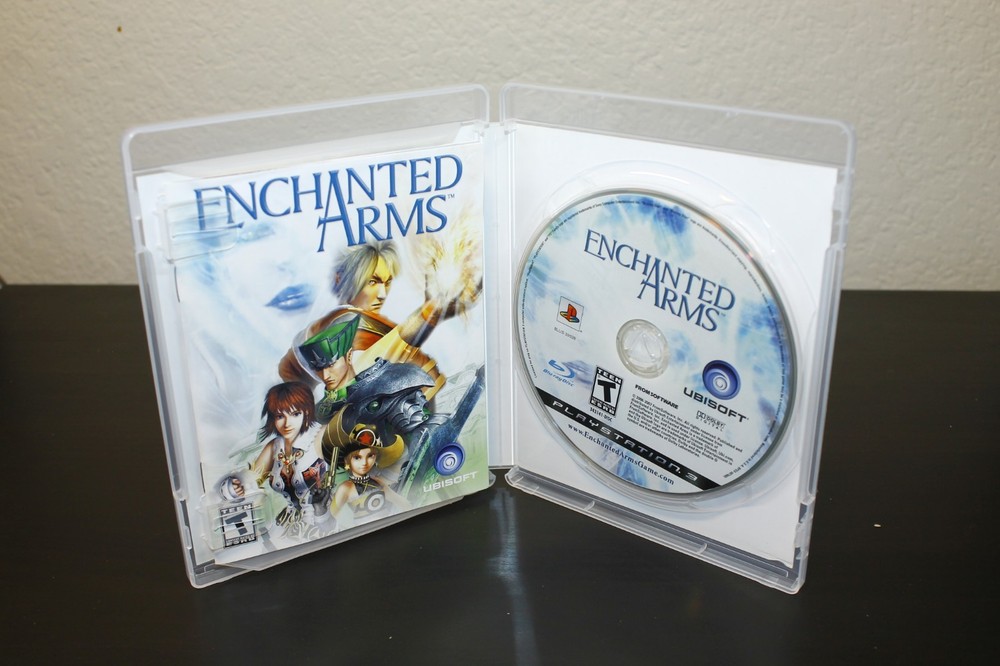 PlayStation 3 Enchanted Arms Game CIB Mint Disc FromSoftware Clean & Tested Game disc is in mint condition. Manual is in mint condition. The artwork looks great and the case has a like new finish. Overall this game was well taken care of.