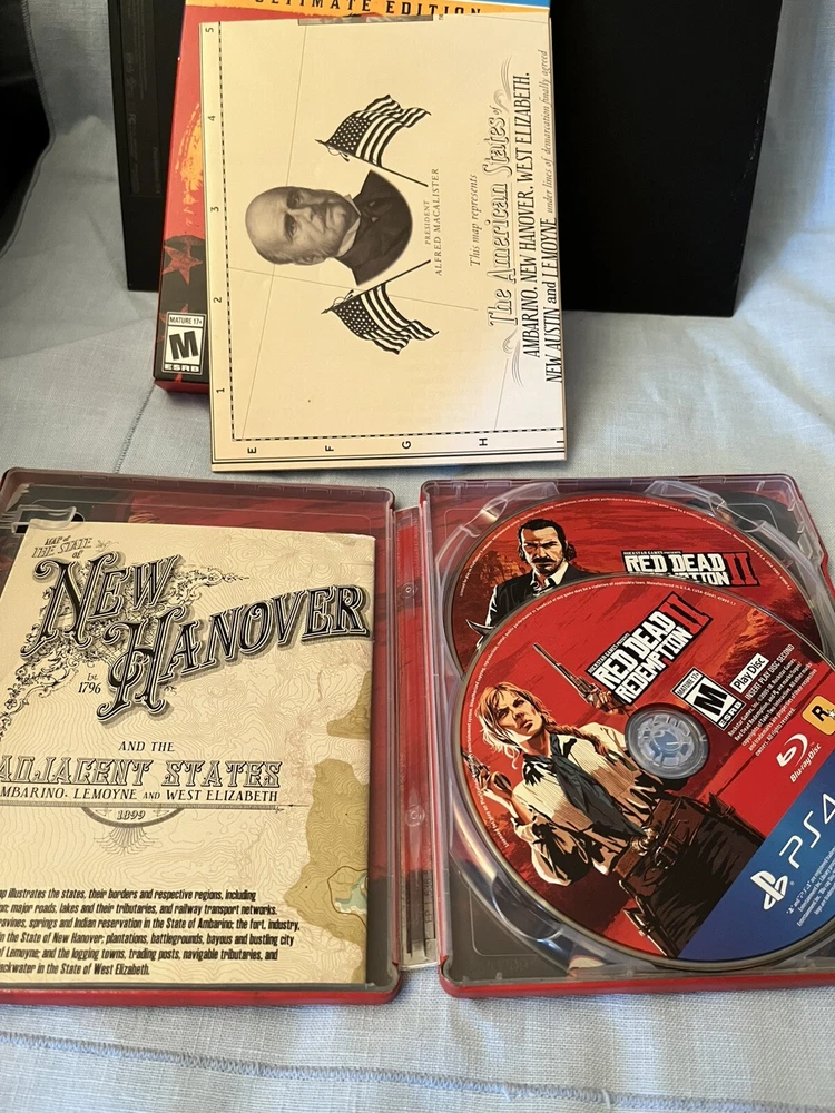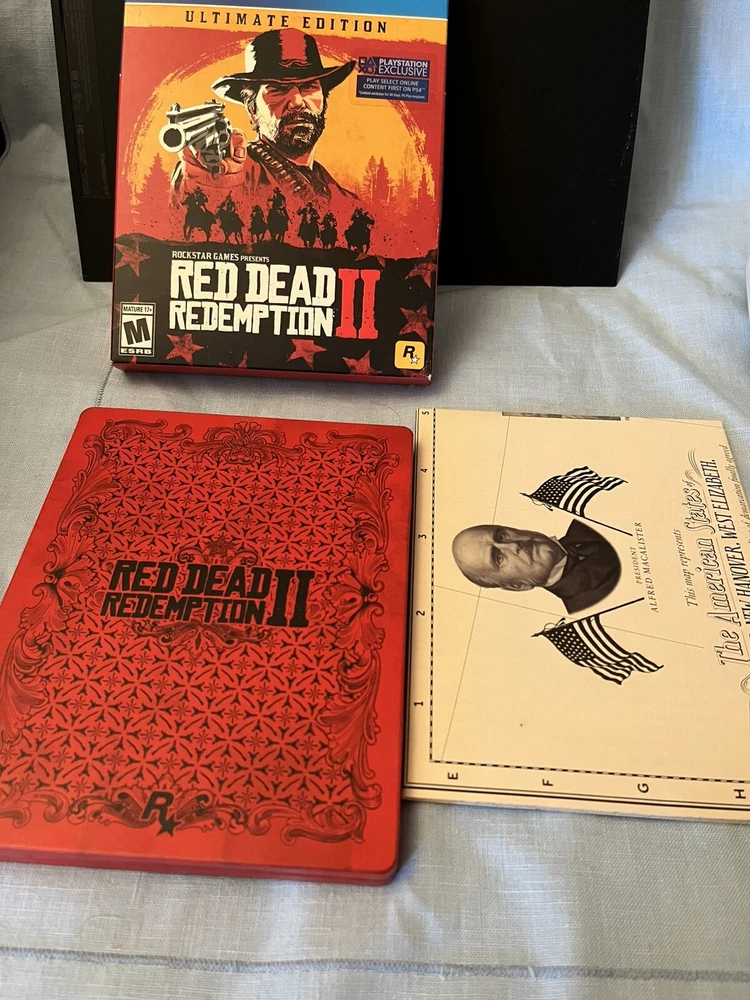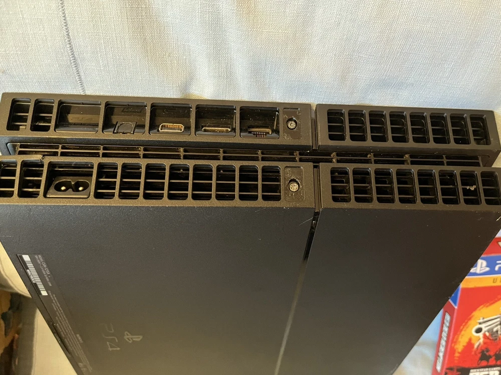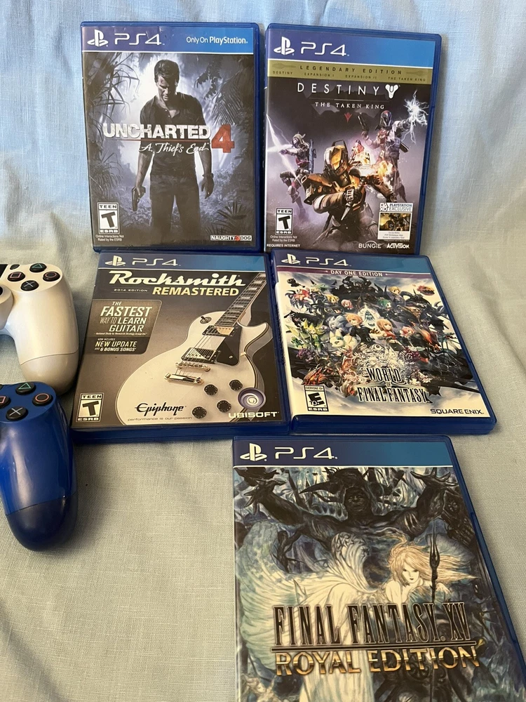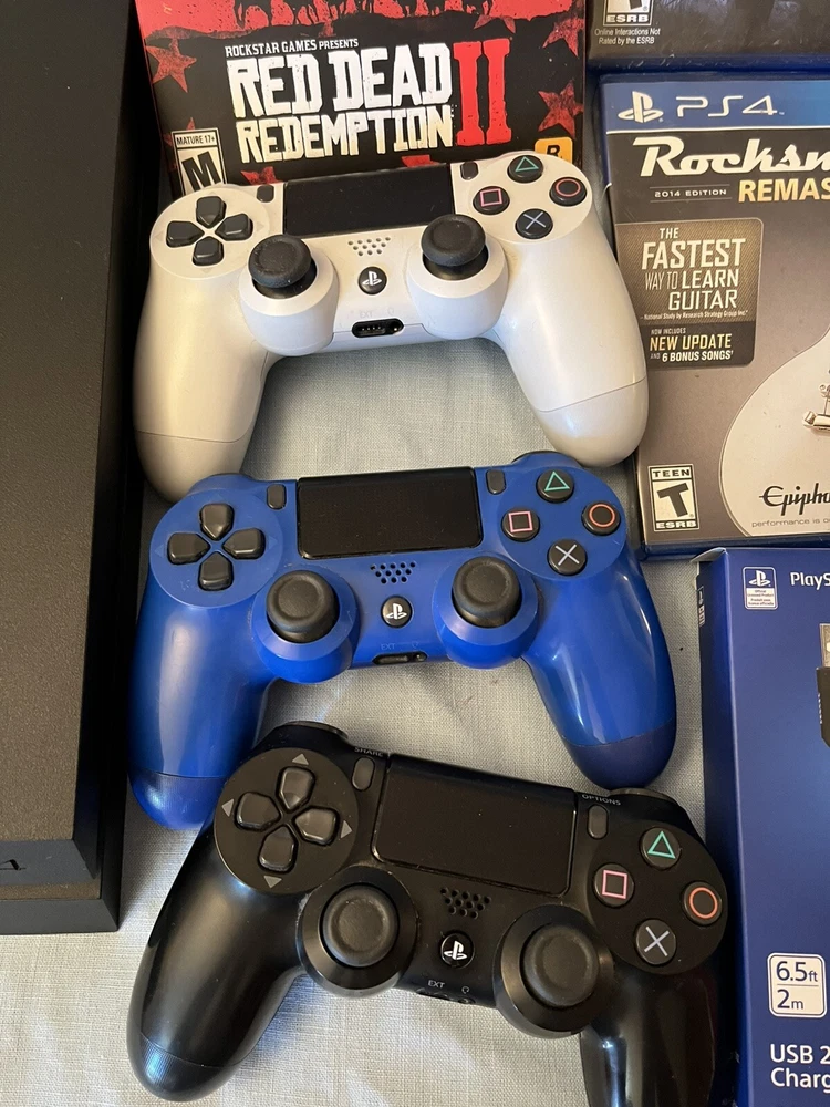 PlayStation 4 Console Bundle with 3 Controllers, 6 Games, and Red Dead Redemption 2 ultimate Edition This bundle includes: • PlayStation 4 Console (tested and working as expected) • 3 PlayStation 4 Controllers (all tested and working) • 6 PlayStation 4 Games (all tested and working) • Authentic PlayStation USB 2.0 Cable for charging controllers • Red Dead Redemption 2 ultimate Edition (the ultimate addition to your gaming collection) ¹ Condition: The console has minor cosmetic damage, but functions perfectly. One of the controllers (blue) has minor stick drift, but is still fully functional. All items have been thoroughly tested to ensure they work as expected. Please note that the games and controllers may have some minor signs of wear, but nothing that affects their performance. KEEP IN MIND. ALL VOUCHERS (if included in game case) HAVE BEEN REDEEMED. If you have any questions or concerns, feel free to ask! Thanks for looking!