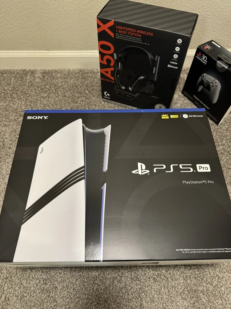 You will receive all items included in the picture 1x PlayStation 5 Pro 1x Astro A50X Headset 1x PlayStation DualSense 30th Anniversary Edition Controller Experience the future of gaming with this Sony PlayStation 5 Pro Digital Edition Console. This console offers lightning-fast load times and stunning visuals, thanks to its powerful hardware and advanced graphics technology. Play your favorite games in stunning 4K resolution and HDR, or take advantage of the console's backward compatibility to play your favorite titles from previous generations. With its sleek white design and compact size, this Sony PlayStation 5 Digital Edition Console is the perfect addition to any home entertainment setup. Enjoy hours of uninterrupted gaming, or take a break and watch your favorite movies and TV shows on the big screen. This console is the ultimate gaming machine, and it's available today!