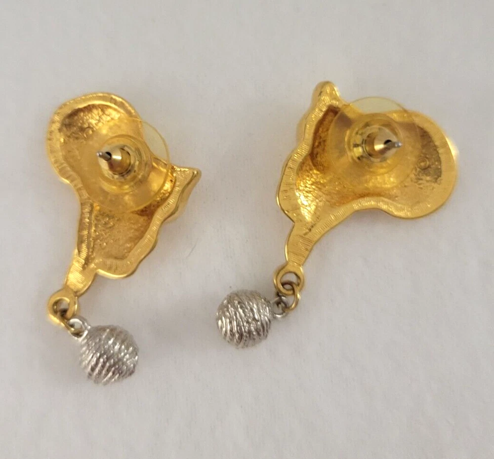 UPC: Does not apply Wholesale: No Signed: No Type: Earrings Material: Metal Country/Region of Manufacture: Unknown Item Length: 1.5 Inch Features: Dangle Brand: CAT Secondary Stone: NA Seller Notes: “Very Good” Ear Area: Lobe gtin13: Does not apply Customized: No Main Stone: No Stone Seller Warranty: No Theme: Animals & Insects, Beauty, Fairytale & Fantasy, Toys & Games, Cats Style: Dangle/Drop, Stud Main Stone Color: Gold Country of Origin: Unknown Metal: Silver Color: Gold Antique: No Occasion: Birthday, Mother's Day, Valentine's Day, Any Era: Undated Metal Purity: NA Number of Gemstones: 0 Shape: Cats Base Metal: Unknown