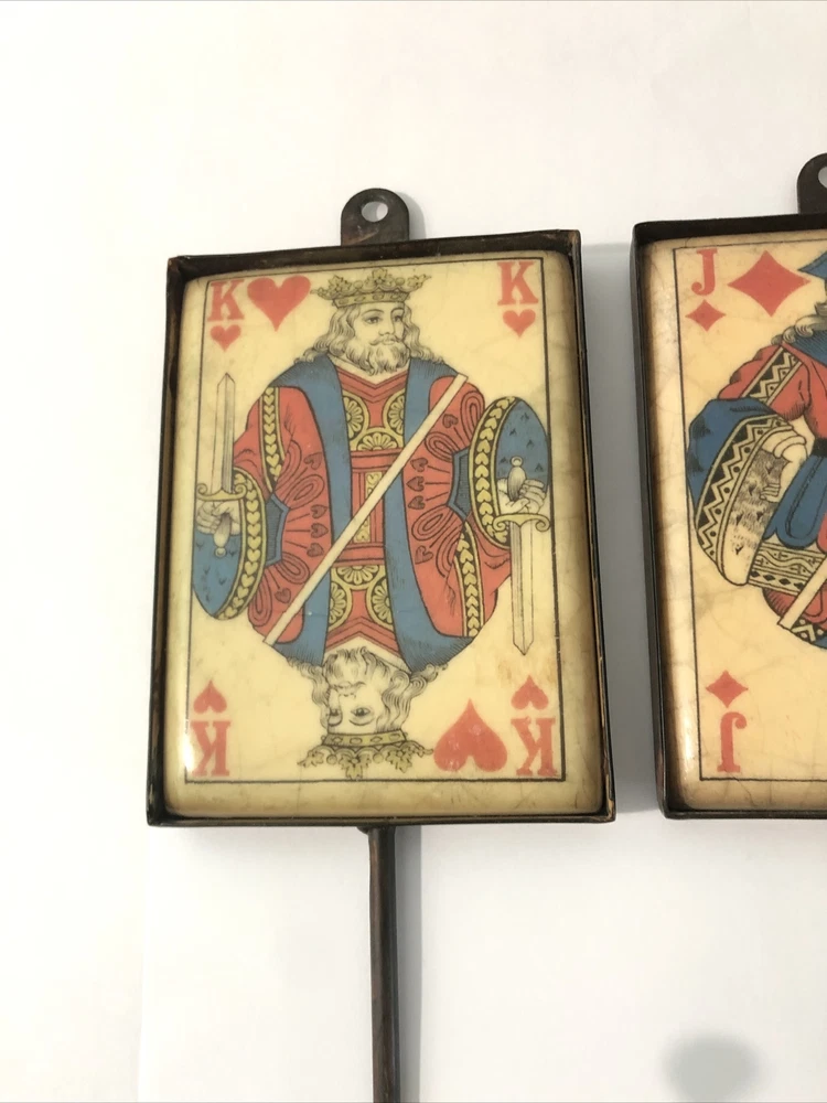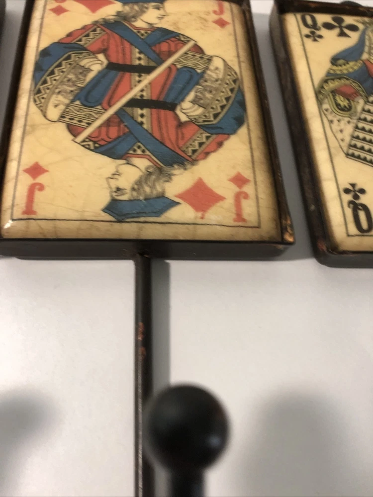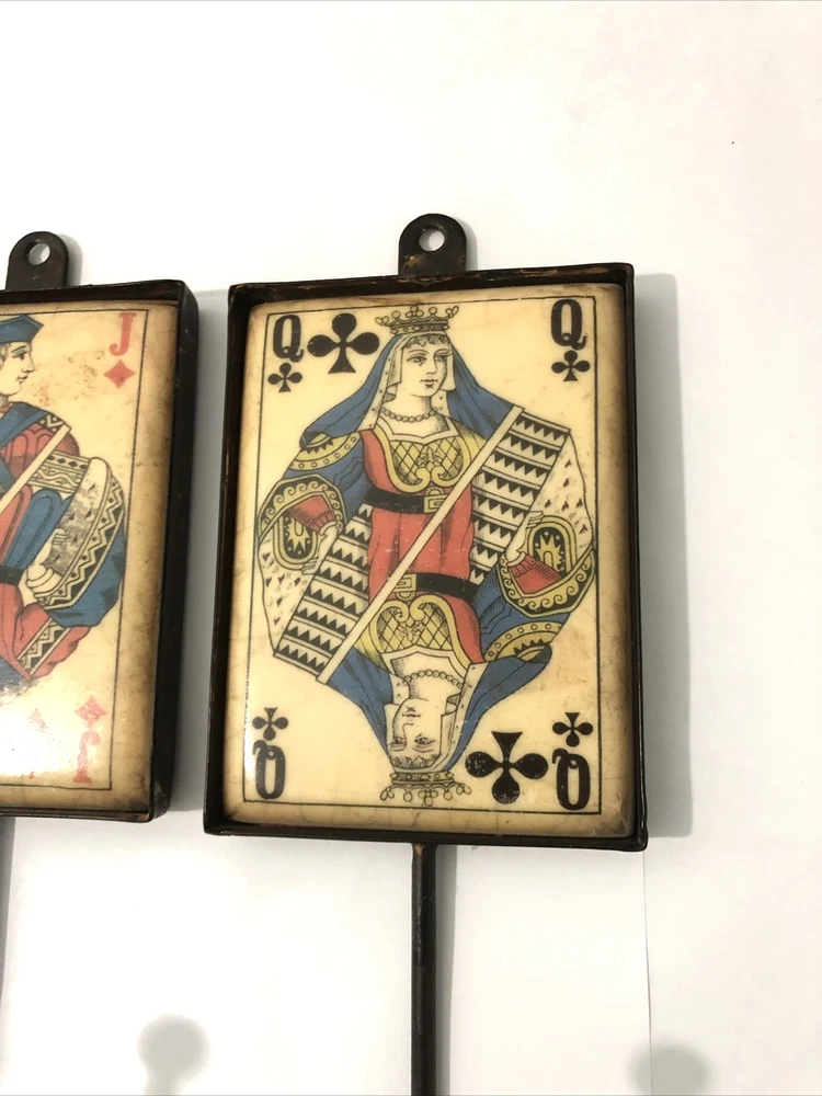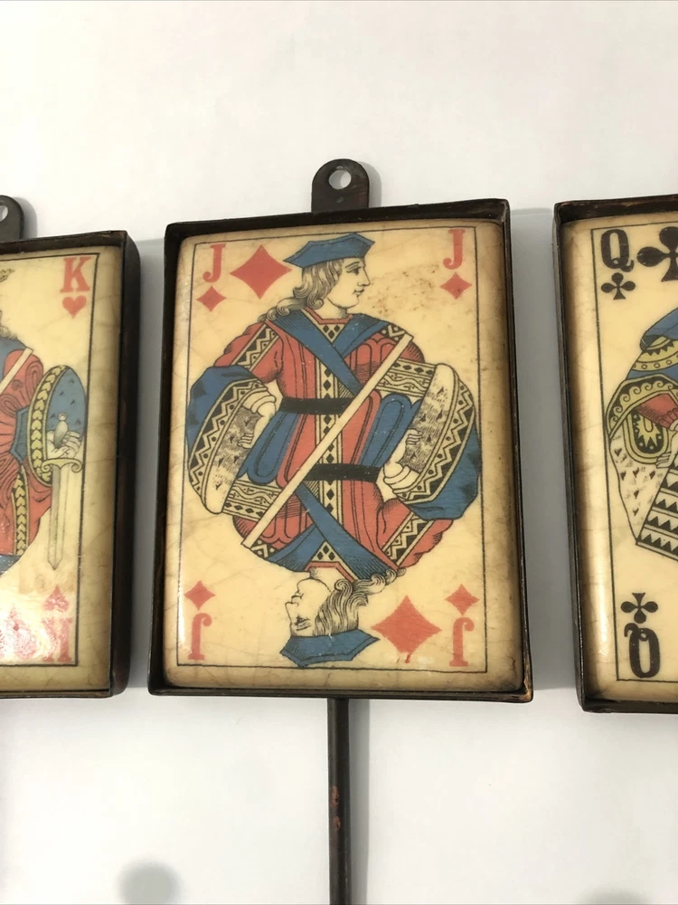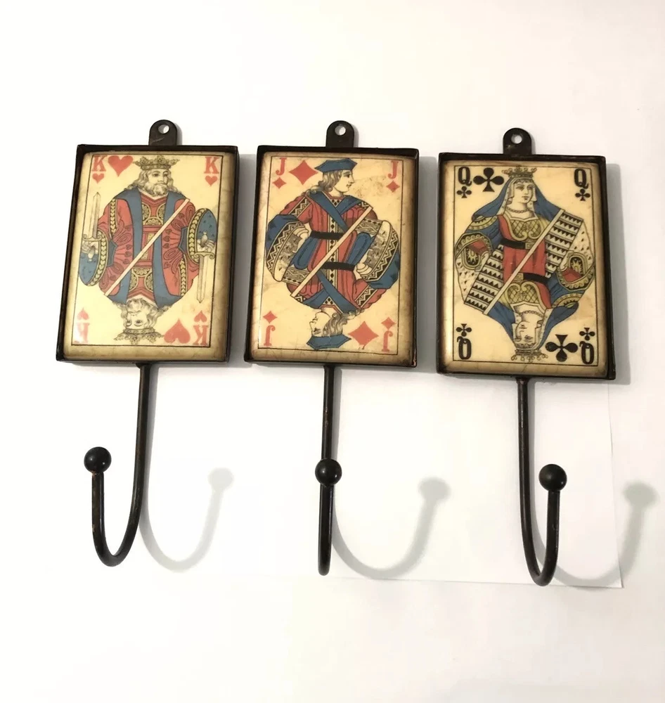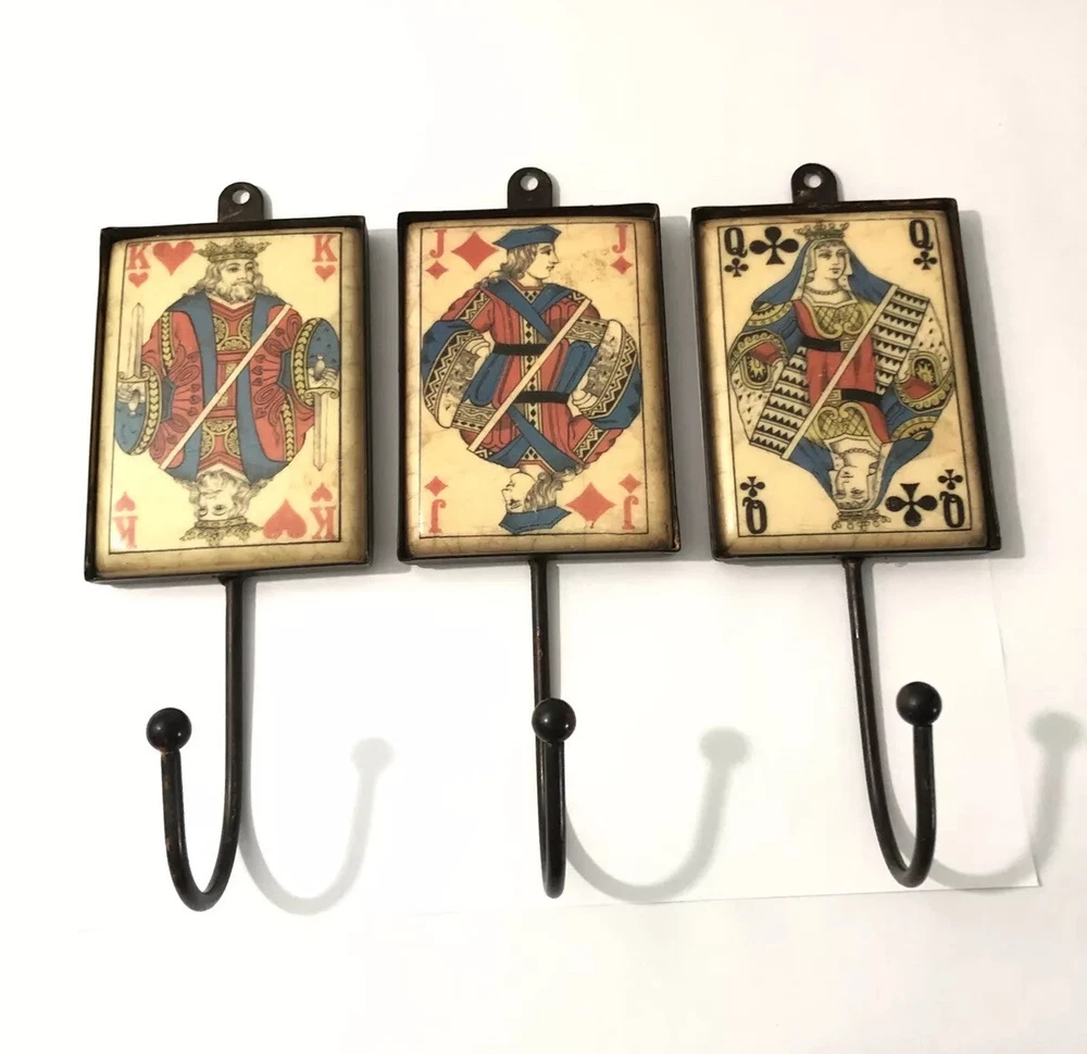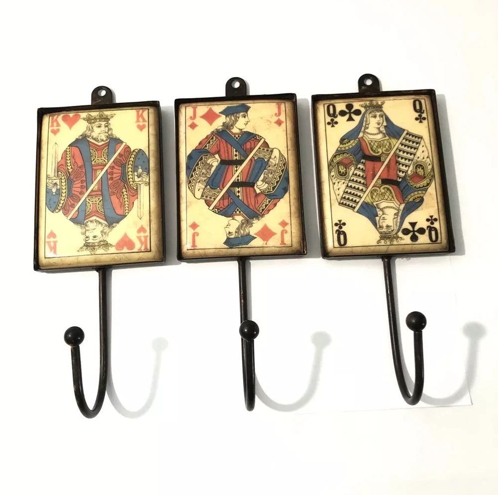 Playing Card Wall Hooks/Hangers-9” Metal & Resin- Distressed. King, Queen, Jack