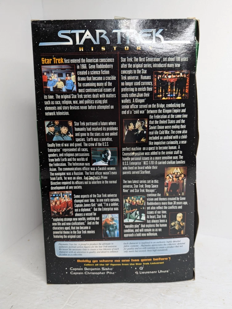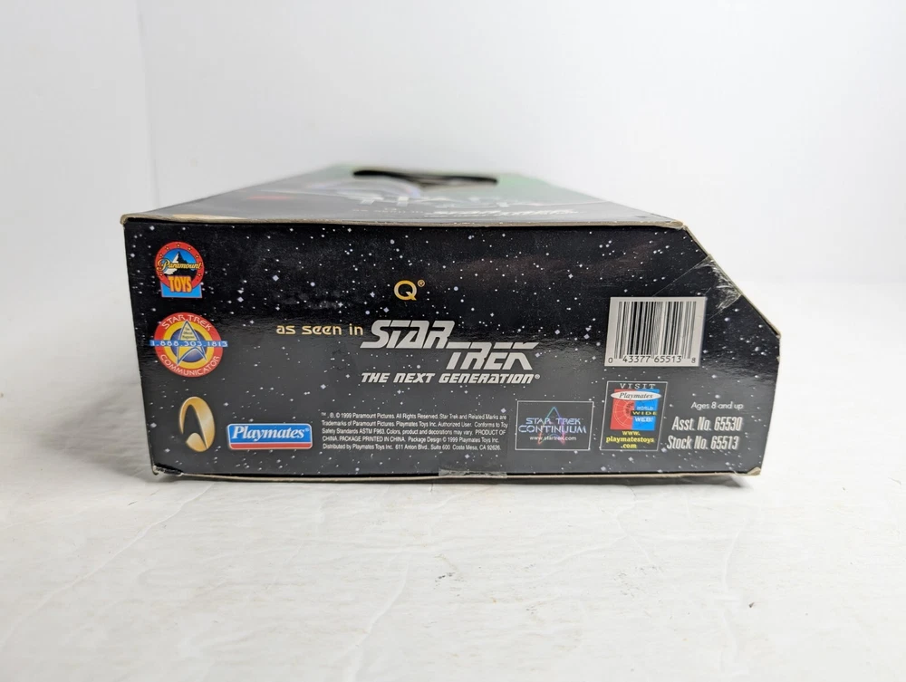 *** Packaging showing its age *** This Star Trek TNG Q 12" action figure is a must-have for any fan of the franchise. Manufactured by Playmates Toys in 1999, this original and licensed reproduction features the iconic character Q in all his multicolored glory. The figure is made of durable plastic and stands at a scale of 1:6, making it a perfect addition to any collection. The item is sealed and in its original packaging, making it a great gift for collectors or fans of the TV show and movies. The figure is part of the The Next Generation series and is categorized under Toys & Hobbies, Action Figures & Accessories, and Action Figures. The item is perfect for anyone who loves Star Trek and wants to add a unique and rare piece to their collection.