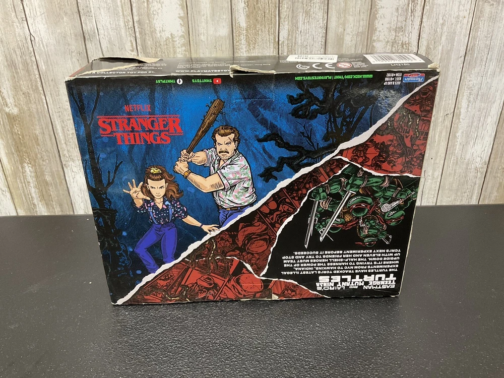 This Playmates Toys action figure set features characters from the popular TV show Stranger Things, including Leonardo, Raphael, Donatello, Lucas, Hopper, and Eleven. The figures are made of plastic and stand at 6 inches tall, with a scale of 1:12. The set includes an original, unopened box and is an original licensed reproduction. The figures are part of the Teenage Mutant Ninja Turtles franchise and are perfect for fans of the cartoon and TV character theme. The set was manufactured in 2022 in China and is an excellent addition to any collection.