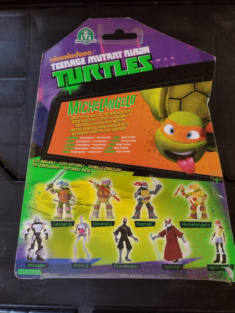 Get ready to embark on exciting adventures with the Playmates Toys Teenage Mutant Ninja Turtles Michelangelo Action Figure - 90503. This detailed action figure of the beloved character Leonardo from the Nickelodeon series is made of high-quality plastic material and was manufactured in 2013. It is perfect for kids aged 4-15 years and 8-15 years. The action figure comes with poseable features and weapons, making it perfect for imaginative play. It is a great addition to any collection and is sure to bring joy to any fan of the Teenage Mutant Ninja Turtles franchise. Get your hands on this amazing action figure today and recreate your favorite scenes from the show! *Has discoloration of plastic*