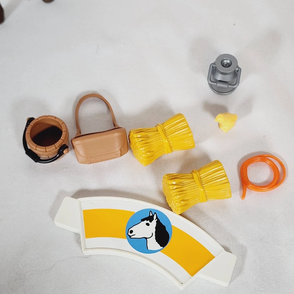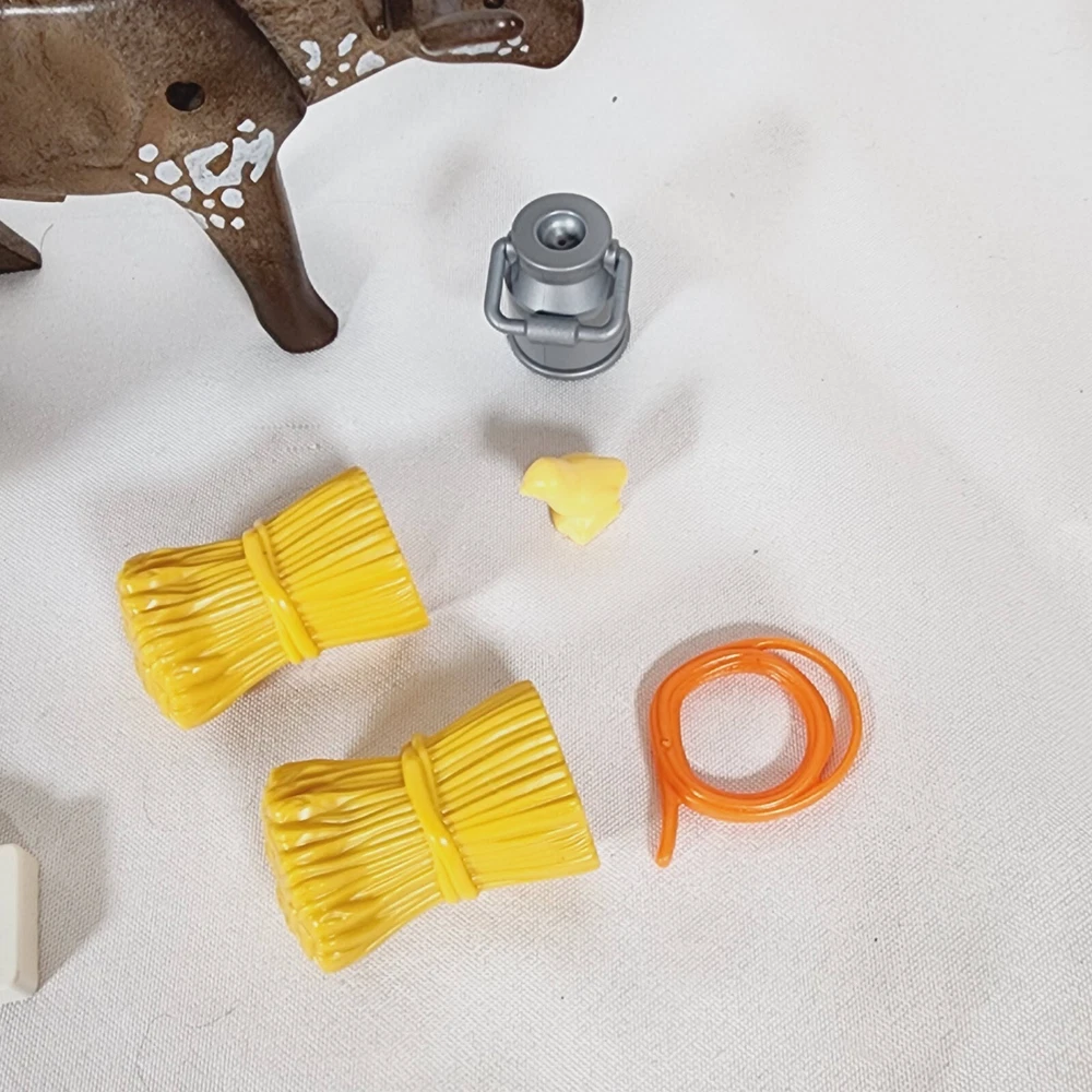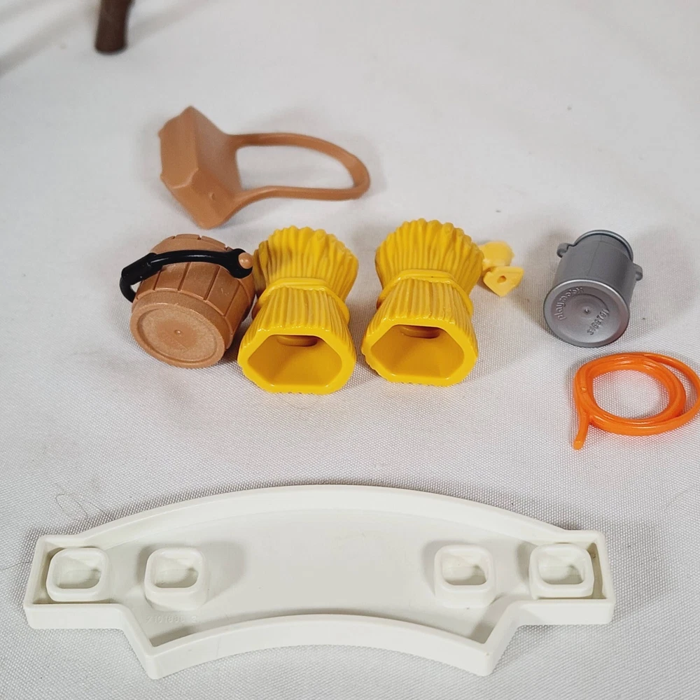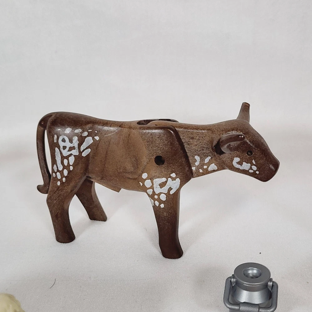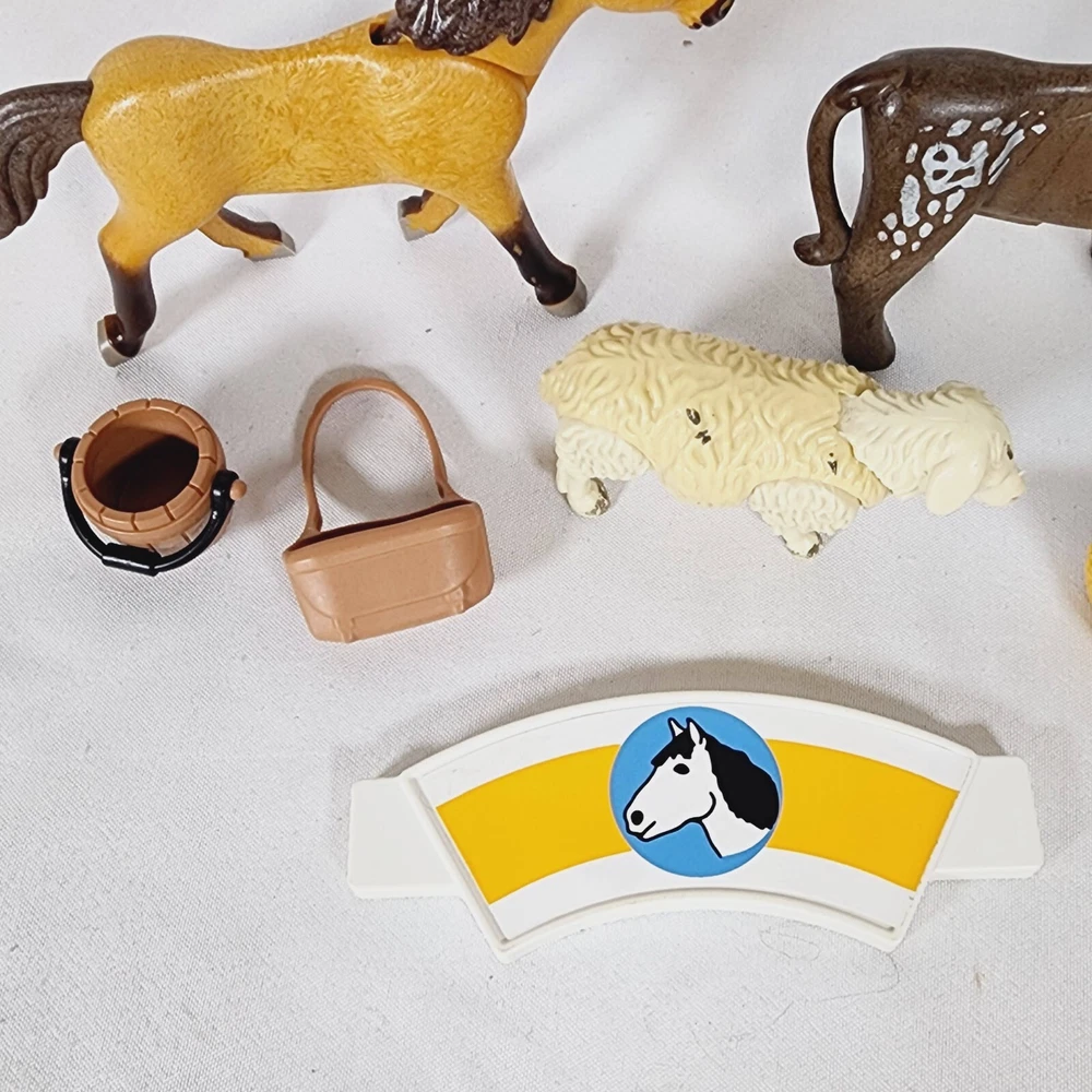 Playmobil 1988 Vintage Farm Animal Set. Not sure what set(s) they're all originally from, so I arranged it into a fun play set on its own. Can also be used as add-ons to your existing sets! Includes all pieces shown. Includes Palomino Horse, Brown Spotted Cow with Horns, Sheep (this one isn't marked and may not be actual Playmobil brand, joints are looser), Chick, and Small Accessories (Milk Bucket, "Wooden" Bucket, 2 Hay Bundles, Rope, Bag, and Sign. All in gently played with condition, nothing damaged or broken besides one horn tip on the cow, pieces may have some light marks to their finish/coating from regular play (most noticeable on the sheep). Please see all pictures for exact cosmetic condition and other details, as they are part of the description as well, and ask any questions before purchasing. We are a husband and wife team with a growing family, and greatly appreciate your support of our small business. Please browse our eBay store for a variety of Playmobil sets and other toys; we're happy to take offers and combine shipping. We hope you enjoy this set!