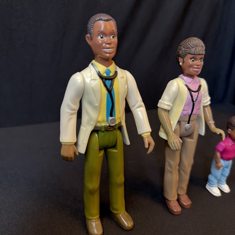 The Playskool African-American Family Of 3 Dollhouse - Dad & Mom are doctors set includes son. Manufactured in the 1990s, this set includes three dolls - a father, mother, and son - perfect for creating a realistic and diverse scene in a dollhouse. The brand Playskool is known for producing high-quality and durable toys, making this set a unique and special addition to any doll collection. CONDITION: Pre-owned. Please look at all photos as they are part of the Description (make sure you want it). The photos are of the actual item you are purchasing. No Refunds, No Guarantee, Items are sold "AS IS" and No Returns are accepted unless otherwise listed with condition. If it’s not in the photo’s It’s not included, Only have what’s in the photo’s. This does not include hangers, stands, tiered trays, or any items used to display products. I attempt to take quality photo's of the "actual Item, Please be aware the lighting, monitor settings & other factors can affect colors. All measurements are approximate. No batteries included and n any items due to shipping regulations. Please Ask any Questions before you purchase!!! Please check out my other listings - New items are listed daily! Add me to your favorite Self lers list for quick access to new listings!! Quick Shipping - items are shipped same day as payment, latest day after Thank you