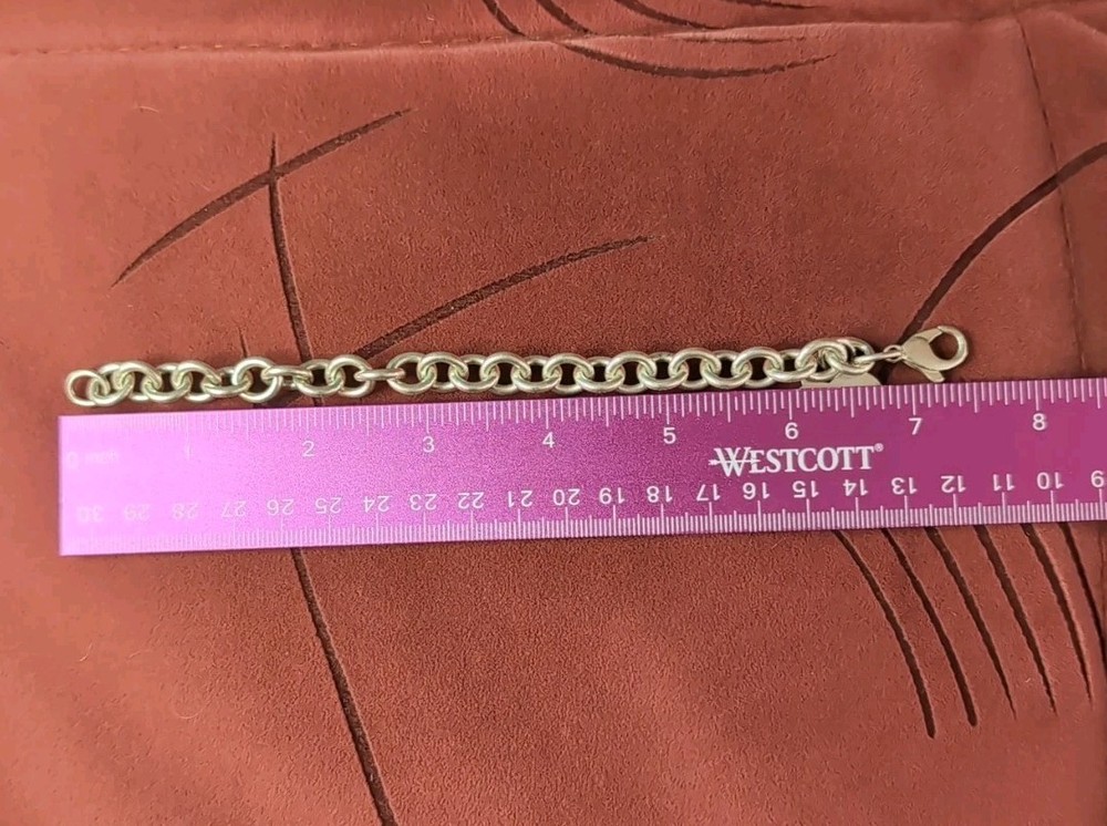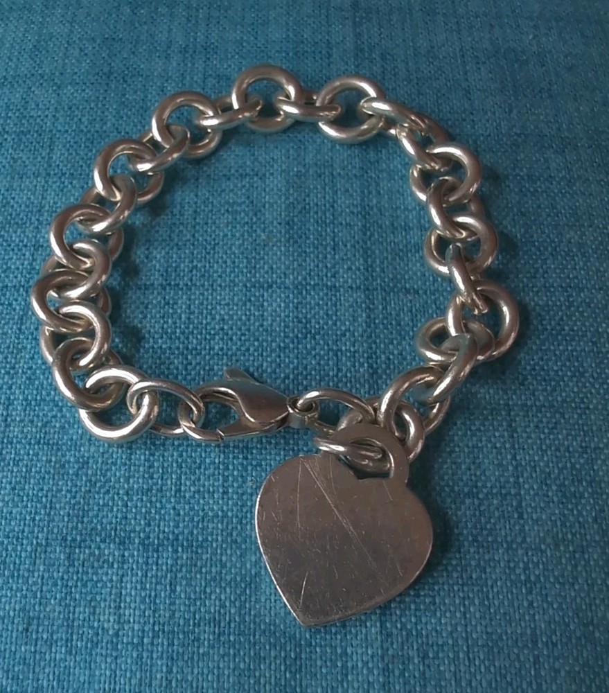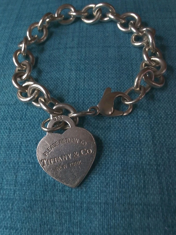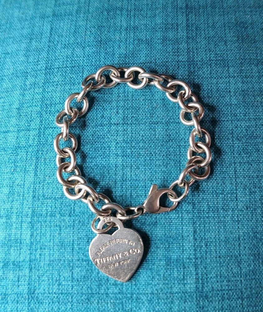 Please Return To Tiffany & Co Sterling Silver 925 Heart Tag Charm Bracelet 7.5" Please read Before the bidding - -We do not clean or polish any vintage jewelry. We do not disturb vintage items to keep their original patina, leaving it to your discretion. To that end, you may polish or keep them in the same condition. -Our items are not always perfect and occasionally we aren't perfect either (although we do our best). We are not experts regarding this item. We are not authorized agents or representatives of any name brand, © or ® item. We simply have lovely, pre-owned items available for sale. It might have some surface wear, aging, discoloration, patina or other minor imperfections. We do our best to describe things given our training, knowledge, ability & research. Ultimately... You make the call. -Please use photos to evaluate this item, as they a part of the description. You are bidding on the exact item pictured. Colors can vary from screen to screen. (which means the actual item may be lighter or darker than it appears on your device). Photos are often taken with a degree of magnification, typically showing more imperfections than the naked eye will see. As such, many people say that their items look better in person. Feel free to ask any questions regarding this item -All items will normally be shipped within two business days via USPS with tracking. If you purchase multiple items, we do combine shipping. -Bid with confidence as we sell only authentic sterling merchandise. Good luck and happy bidding! HM 35.2