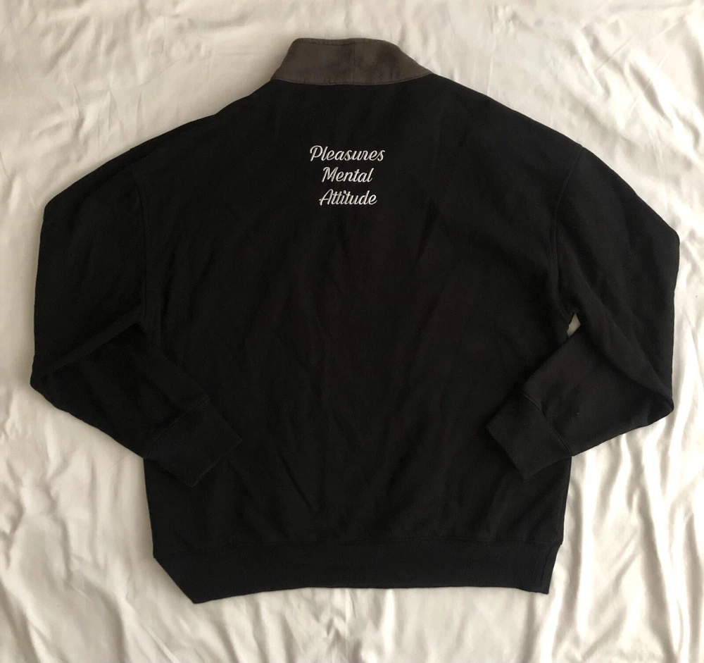 Sleeve Length: Long Sleeve Features: 1/4 Zip Size Type: Regular Color: Multicolor Material: Cotton Accents: Logo Size: S Brand: Pleasures now Type: Sweatshirt Department: Men Pattern: Solid Season: Fall, Spring, Summer, Winter Style: Pullover
