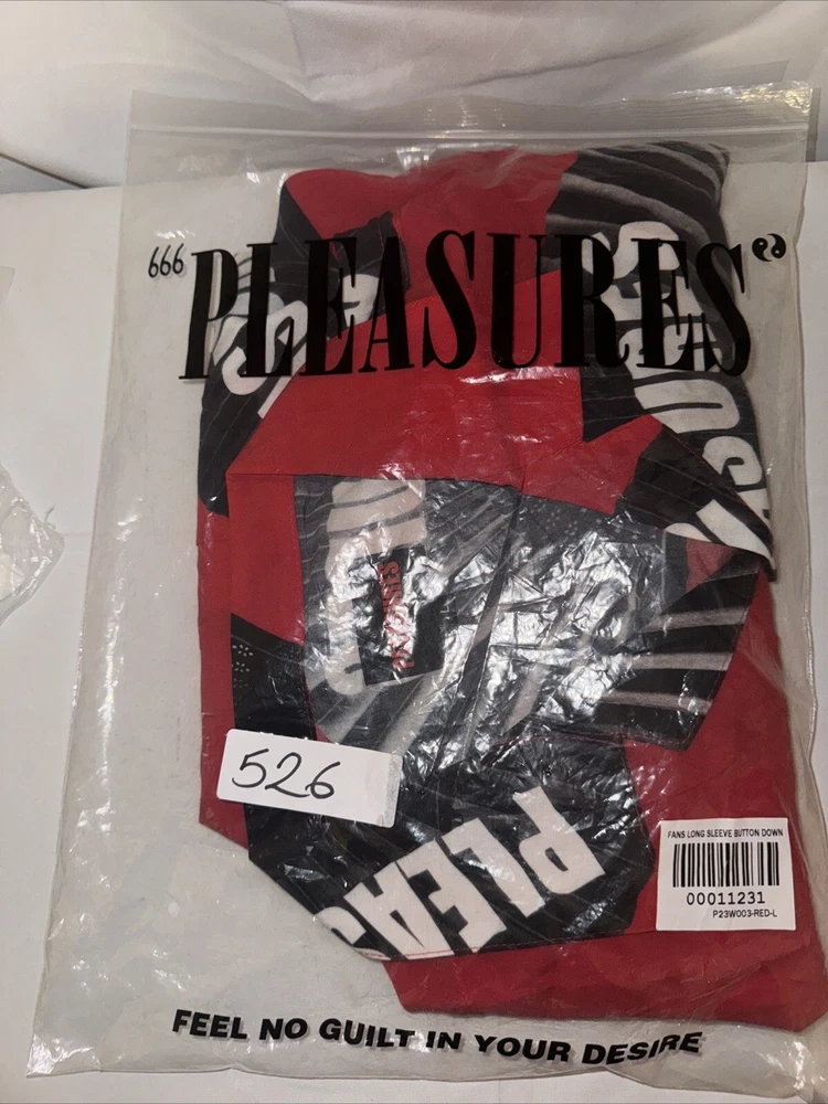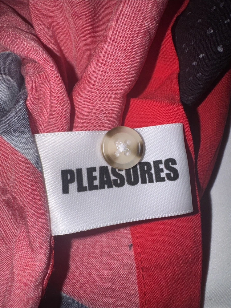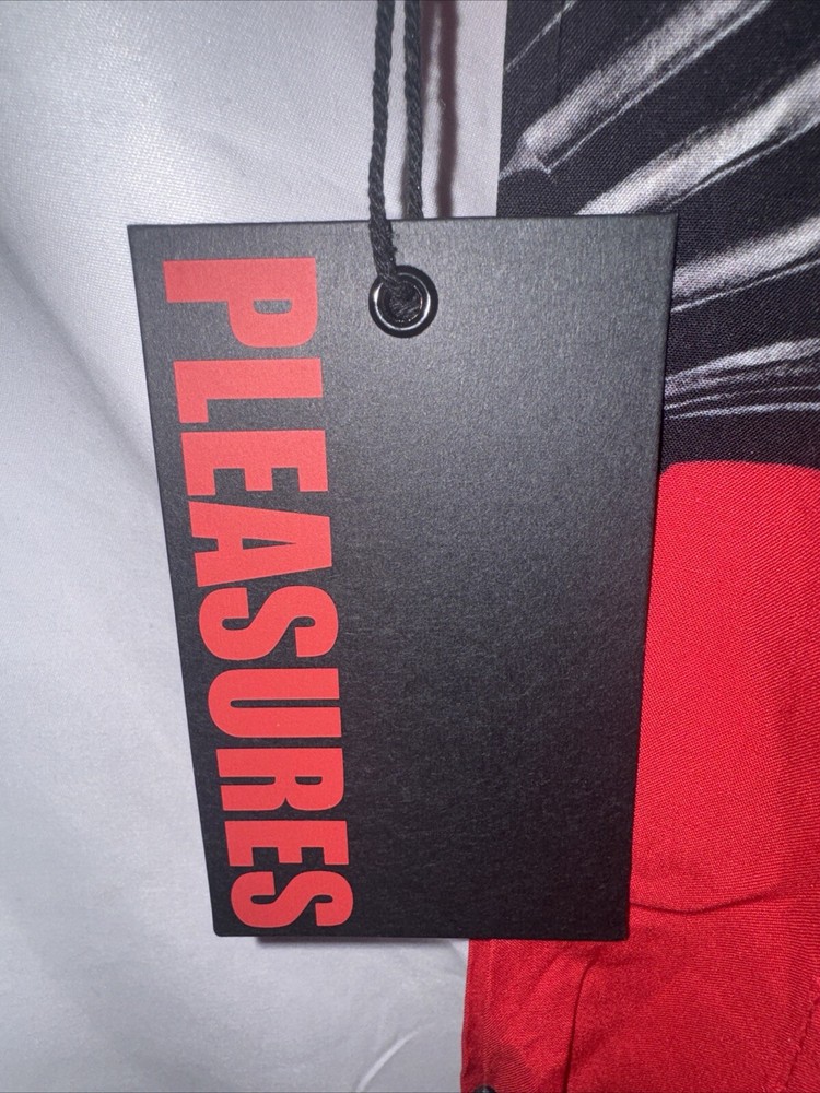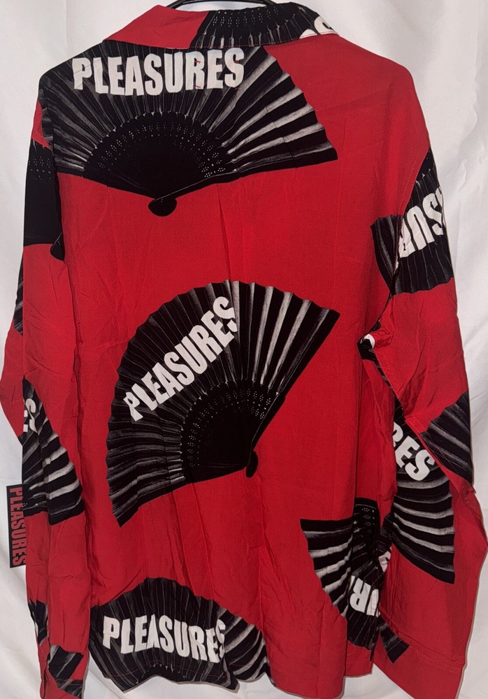 Introducing a stylish and comfortable long sleeve button-down shirt from Pleasures, perfect for men who want to elevate their wardrobe. This shirt comes in a striking red color with accents of buttons that add a touch of elegance to the design. The shirt is made of high-quality down fabric that provides comfort and durability, making it perfect for everyday wear. The shirt is available in size L, with a regular fit that is suitable for most body types. It has a classic T-shirt design with long sleeves and a button-down front that makes it versatile and suitable for any occasion. This Pleasures shirt is a must-have for any fashion-conscious man who wants to add a touch of style to their wardrobe.