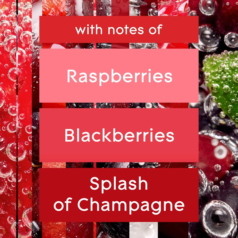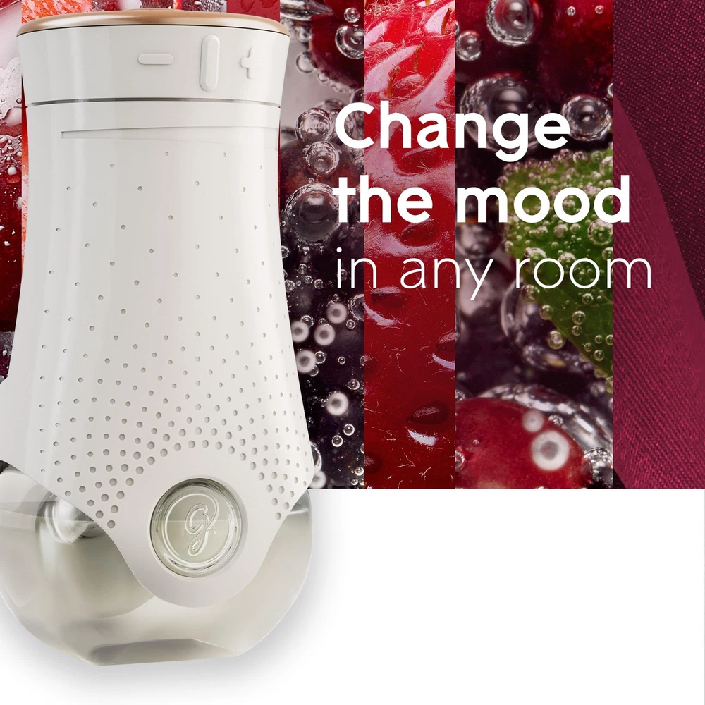 Create a playful mood�with our complex blend of �Bubbly Berry�Splash plug in air freshener for home. Crafted by master perfumers with notes of raspberries,�blackberries and a splash of champagne.�Have fun with the air with our scent diffuser and change the mood with 2x more adjustability (vs. previous warmer). Express your mood with oil diffuser in�Bubbly Berry Splash�fragrance. Simply remove the cap from the refill and insert it into plug in warmer. Plug the warmer into an outlet and adjust the level of fragrance to create the mood you want. Tickle your playful side with 's plugin air freshener and fragrance infused with essential oils. Decorate the air with our Plug In Air Freshener Oil plugins that change the mood with 2x more adjustability (vs previous warmer) Have fun with the air with Air Freshener dispenser with notes of raspberries, blackberries and a splash of champagne This air freshener fragrance is crafted by master perfumers and infused with Essential Oils Enjoy up to 50 days of fragrance* with Plugin Refills (*per refill, on low setting)