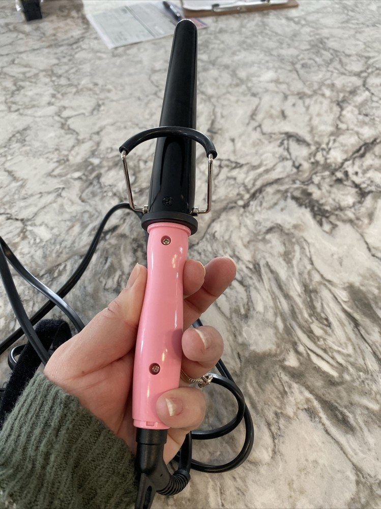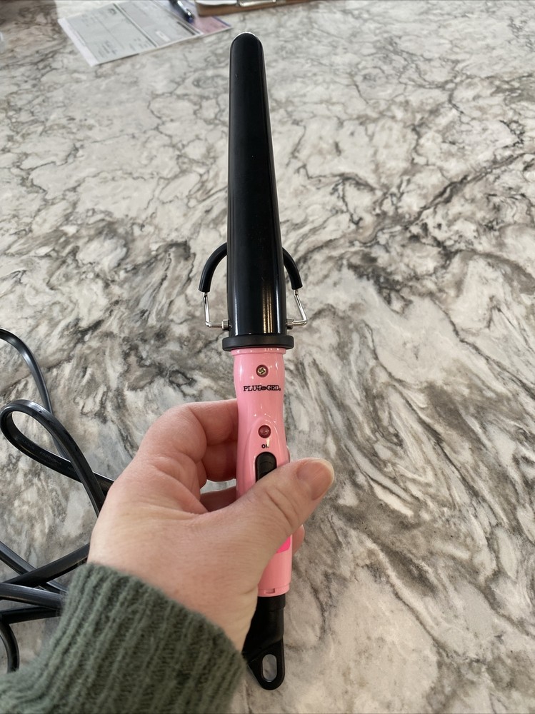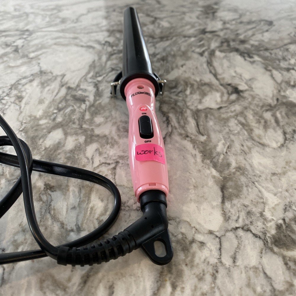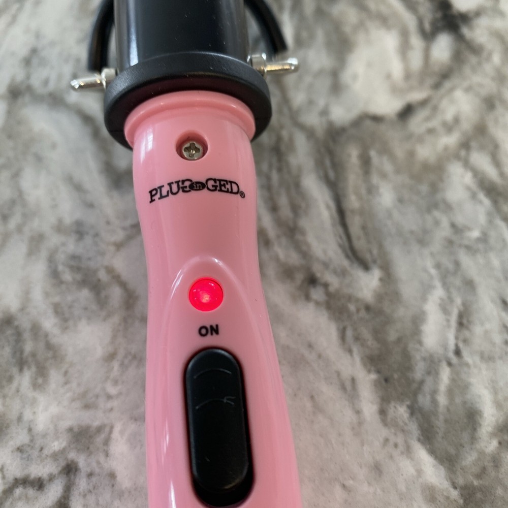 Plugged In Travel Stow 'N Go' Mini Curling Iron Wand Pink.