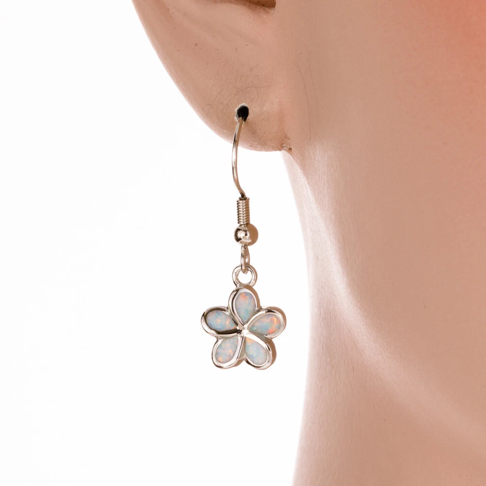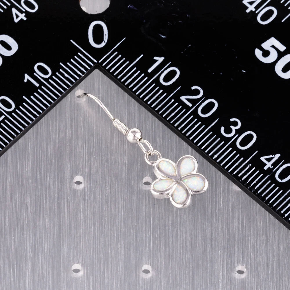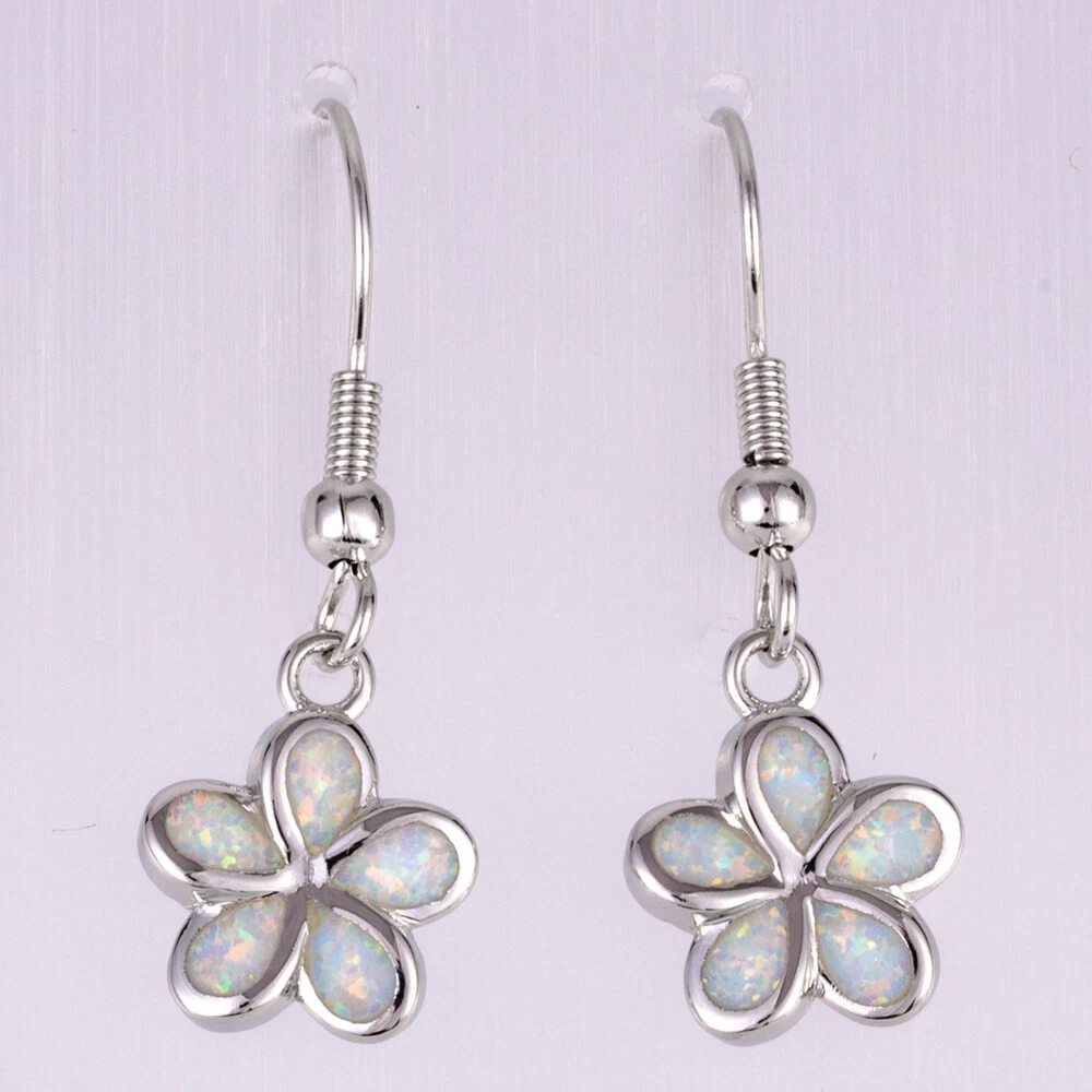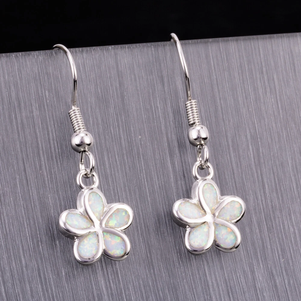 HomePlumeria White Fire Opal Silver Jewelry Dangle Drop Earrings