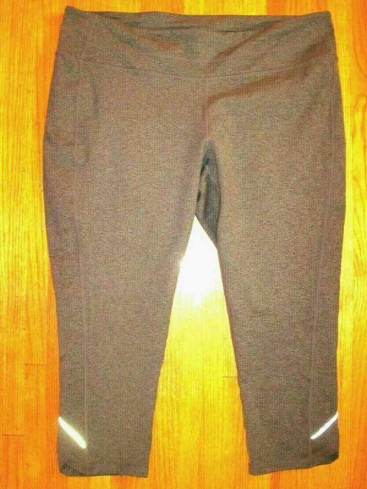 Plus Size Gander Mountain GSX Plus Size High Waist Gray Capri Cut Spandex Yoga Fitness Tights Size 2XL 20-22 New. Comfortable and super soft, 87% Polyester, 13% Spandex. Relaxed 40-inch elastic waist, 3 1/2-inch wide waistband, rear center zipper pocket. 22-inch inseam. Comes from a pet free smoke free home.