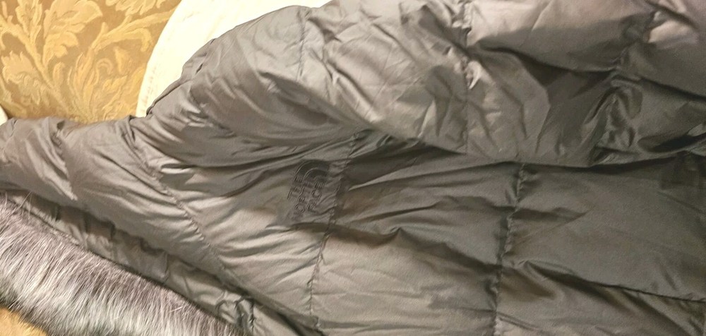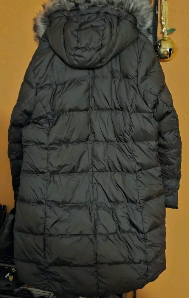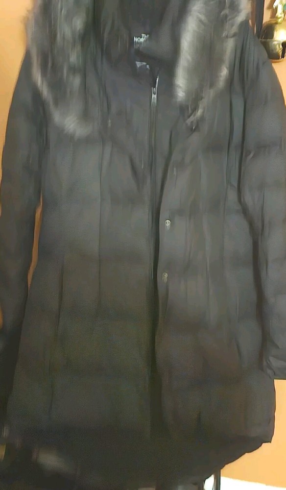 Stay warm and stylish during the winter season with this black North Face coat for women. Featuring a full zip closure with buttons and long sleeves, this lightweight hooded coat is perfect for those chilly days and blistering nights. The plus size 2X coat is made with high-quality materials and is designed for the activewear occasion. The North Face brand is known for its superior quality and this coat is no exception. With a theme of outdoor adventure, this jacket is perfect for any winter activity. The North Face product line ensures that this coat is not only functional but also fashionable. Don't miss out on the opportunity to own this must-have winter coat. This is a pre owned coat with no damages, cat or smoke smell. The coat was worn less than a handful of times. This coat has a black grayish color to it. Also, a faux fur hood. Looking to sell ASAP is willing to negotiate and wiggle around with the price.