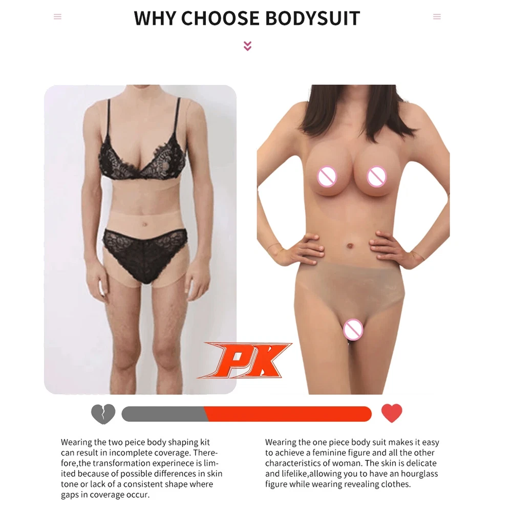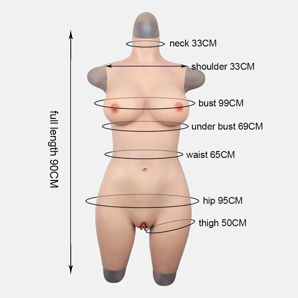 This silicone full-body suit is incredibly realistic and comfortable! The high elasticity makes it easy to wear, and the E-cup silicone filling gives a natural look. Perfect for cross-dressing, cosplay, or fun events like Halloween. The soft material feels great against the skin, and the high collar adds to the seamless illusion. Love that it comes in multiple shades for a perfect match. The option to customize with an open anus or zipper is a nice touch. Highly recommend for anyone looking for a high-quality, realistic bodysuit!