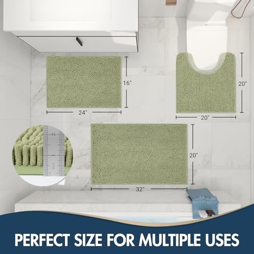 Menu 1. We require immediate payment. 2. We currently accept payment via eBay managed payments only. 3. Once payment is cleared, we will dispatch your shipment within 1-3 business days. Please refer to the "Shipping" tab for more information regarding shipping speed to your destination. Bathroom Rugs Sets, Thick Soft Absorbent 3 Piece Chenille Bath Rugs, Non-Slip, Dry Quickly, Machine Washable, Shaggy Mats with U-Shaped Toilet Rug for Bath Floor, Tub and Shower, Sage Green Product description BATHROOM RUGS 3 PIECE: Include 1 Small bath rug 16"x24", 1 U-Shape contoured toilet mat 20"x20", 1 Large bath mat 20"x32". Unique fiber-locking technique, say goodbye to horrible fiber-dropping! Versatile enough for use in the bath, in front of the sink or anyw in your home w you desire toe-pampering comfort. SOFT AND THICK CHENILLE: Pamper your feet with the softest, plushest and coziest chenille; measuring almost 1" thick, making your feet surrounded by thousands of individual microfiber shags, just like stepping on cloud. Plush pile and 6mm sponge foam layer inside helps soothe feet and keeps toes warm from the cold floor. NON SLIP BACKING: The bathroom sets have a high-quality anti-skid PVC backing to ensure it doesn’t slip and slide as you step on it, keep you more safe and cozy. The backing gives this rug unmatched durability essential for high-traffic areas in your home. Please make sure it is on a CLEAN DRY FLAT FLOOR or it may pose a hazard. ULTRA ABSORBENT & QUICK DRY: Our absorbent bath rug can soak up the water quickly like a giant sponge; dense chenille pile captures extra moisture helping to keep your floors clean and avoid wetting your floor while stepping out of the bath, shower or standing at the sink. It keeps your feet dry and comfortable. MACHINE WASH & DRY: Use gentle mode, normal temperature water and mild detergent (no chlorine or bleach) for cleaning, hang to dry or tumble dry at low temperatures. Shake to restore fluff. No worry about it getting the fibers off, it's really easy to handle and care. T may be creases because of folding, but will be flat after using, please do not worry. Tips: Due to the lighting and monitor settings, the color of pictures will be vary. PLEASE MESSAGE US IF YOU HAVE ANY OTHER QUESTIONS, AND MANY THANKS FOR READING ALL OF THIS. Copyright ©#. All Rights Reserved.