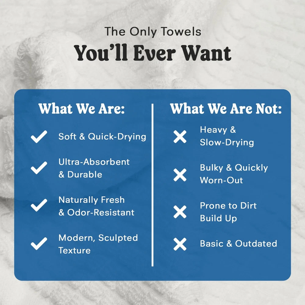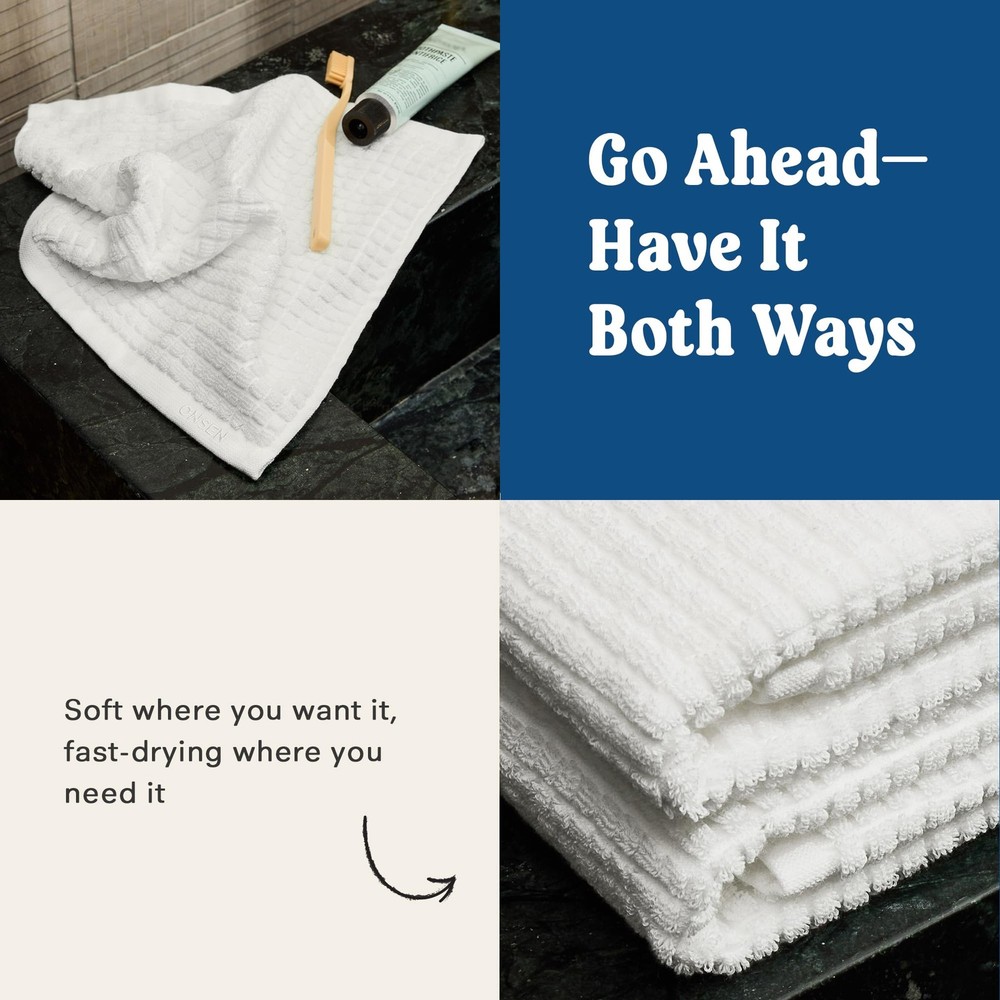 Just got these towels and wow - they're so plush and soft! Dries super fast after use which is perfect for my family. Love how they look crisp and clean in our bathroom. Definitely worth every penny!