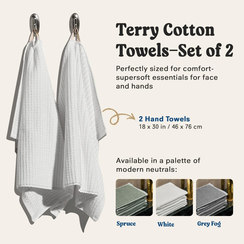Transform your daily routine with the White Terry Cotton Towel Set. This set of two hand towels, crafted from 100% cotton, embodies a sophisticated blend of luxury and functionality. Designed with a plush weave, these towels offer exceptional softness while ensuring quick drying, making them an ideal fit for any bathroom aesthetic. These white hand towels are versatile, suitable for a range of uses from personal care to accommodating guests. Whether you are refreshing after a morning shower or preparing your bathroom for visitors, these towels provide both style and practicality. The elegant checkered pattern and pure white color seamlessly complement any decor, evoking the serene simplicity found in minimalist design. For those who appreciate the finer things, this towel set acts as your personal spa accessory, transforming post-bath rituals into moments of calm. Their lightweight and space-saving design ensures that they fit effortlessly into any linen closet or travel bag, making them a convenient choice for home or on-the-go use. Constructed for durability, these cotton towels for bathroom retain their plush softness even after repeated washes. The towels are machine washable and dryable, promoting ease of care without sacrificing quality. Simply follow standard cotton towel care instructions to maintain their pristine condition. This Towel Set is an essential addition to any household that values both form and function. It is suited for adults seeking a touch of elegance in their daily lives, offering a quietly confident blend of design and utility. Embrace the simplicity and effectiveness of these soft bath towels, and experience how folding towels can transition from a chore to a meditative experience. Elevate your daily reset with towels that are more than just a basic necessity; they are an indulgence in comfort and style. Ultimate Bath Experience: Transform your bathroom into a sanctuary with the Cotton Plush Towel Set. These ultra-soft, 100% cotton bath towels provide maximum absorbency and quick drying for a luxurious escape Elegance in Every Detail: Elevate your bathroom decor with these stylish white bath towels. Sized at 20 x 30 inches, they bring sophistication while offering the plush comfort associated with luxury bath towels Quick Drying and Convenient: Enjoy the convenience of quick-drying towels that maintain their softness after every wash. 's expertly crafted cotton towels ensure your bath towels are fresh and ready for use, embodying clean living Durable Softness: Crafted from premium materials, these bathroom towels withstand daily use while retaining their softness. Enjoy cotton towels that remain gentle on your skin, offering durability without compromising comfort Versatile and Essential: This cotton bath towel set is ideal for a variety of bathroom needs, from everyday use to accommodating guests. Enhance your home with these essential towel sets, ensuring you have the right towel on hand for any occasion