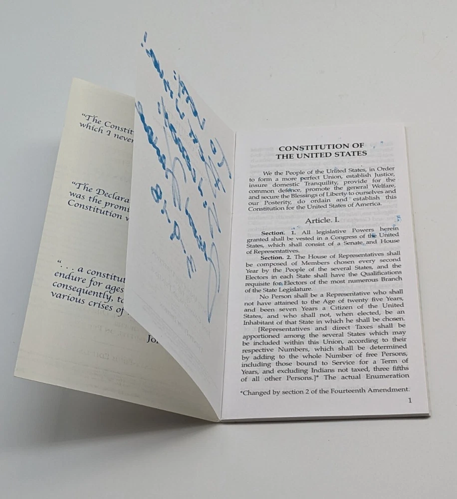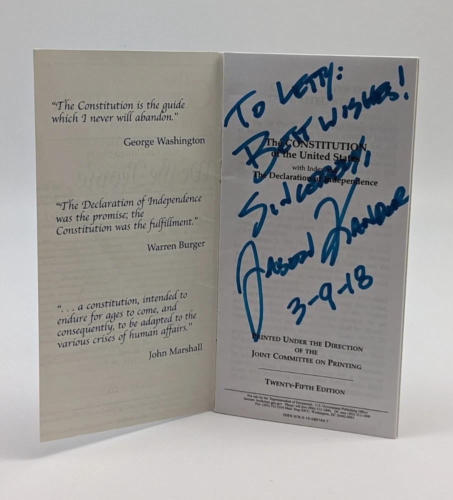 Pocket Constitution Signed By JASON KANDER. This booklet has some wear, but is in good condition. It measures about 3" x 6". Please look at the items in the photos carefully. The item pictured is the exact item that you will receive. My items are all cleaned prior to listing and will be packaged with care.
