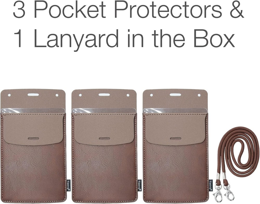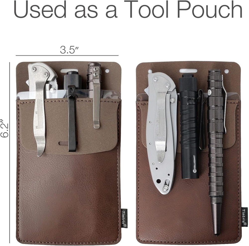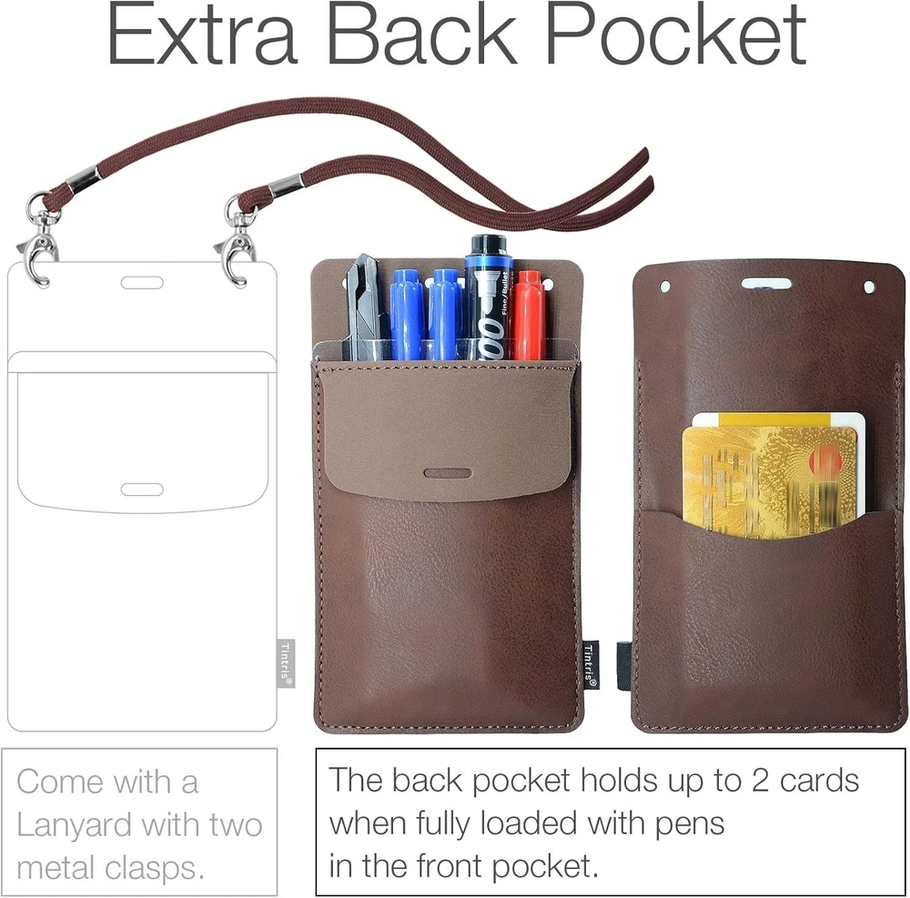 Pocket Protector, 3 Pack Leather Pen Pencil Holder Pouch Organizer for Chestnut