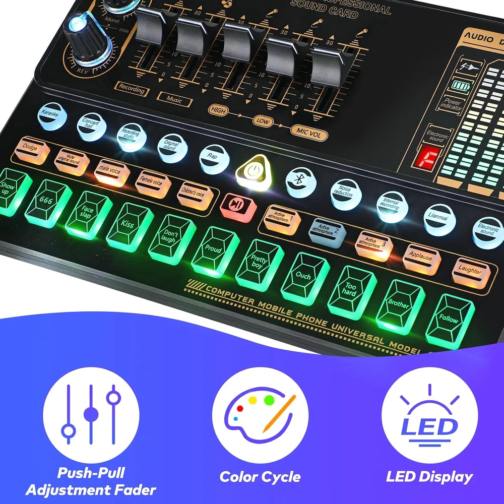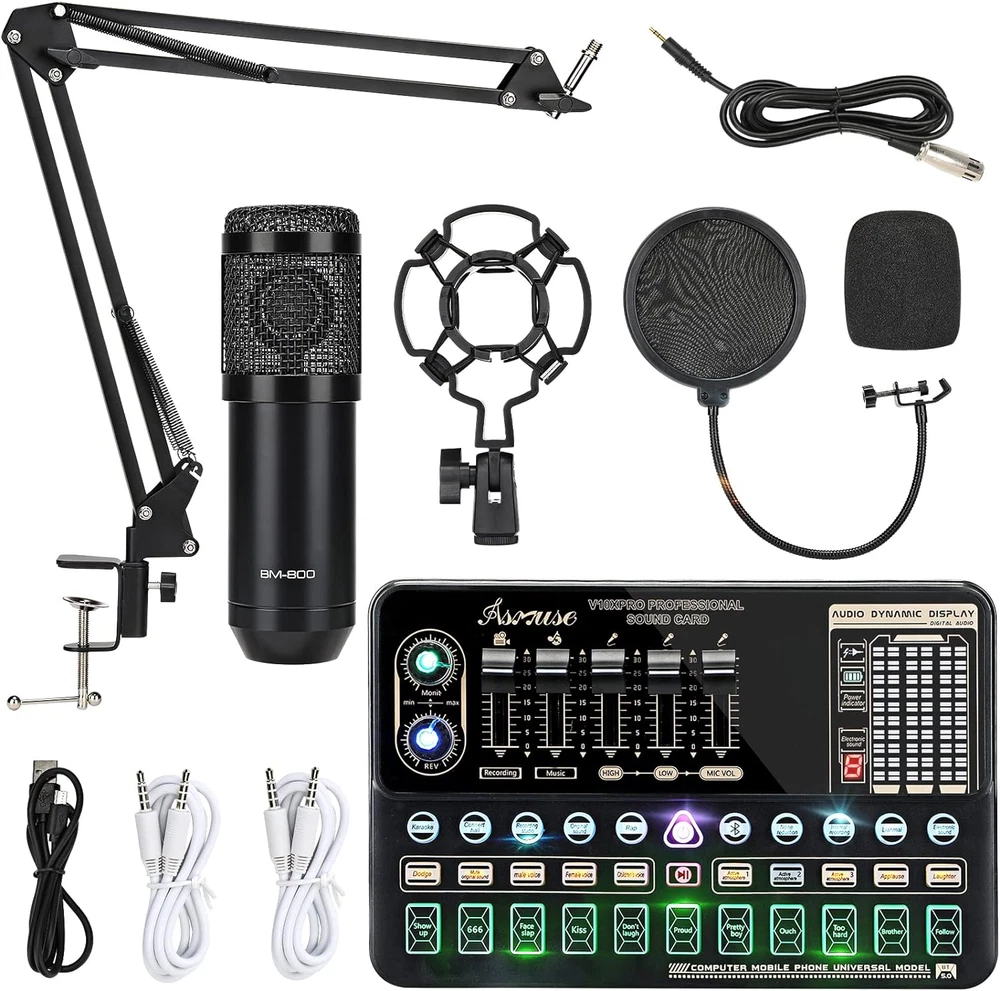Store New Arrivals Add to Favorite View Feedback Contact Podcast Equipment Bundle, BM800 Condenser Podcast Microphone Bundle Kit with Live Sound Card, Streaming Audio Mixer Studio All-In-One Beginner Podcast Package for Recording Youtube Tiktok Description Frequency Range 20-20KHz Signal-to-Noise Ratio 78 dB Power Source Battery Powered Item Dimensions 6.69 x 2.76 x 3.94 inches Material Type Plastic, Metal Audio Sensitivity 10 dB Model Number BM800 Number of Channels 1 Model Name BM-800 Microphone Form Factor Table Array Number of Batteries AA batteries required. Hardware Platform PC, Tablet, Smartphone Connector Type 3.5 mm Jack Item Weight 800 Grams Connectivity Technology Bluetooth, Auxiliary Impedance 140 Kiloohms Special Features 1-Touch Recording, Volume Control, Mute Function, Noise Reduction Special Feature 1-Touch Recording, Volume Control, Mute Function, Noise Reduction Color DJ Compatible Devices Audio Interface Polar Pattern Unidirectional Recommended Uses For Product Singing Included Components Condenser Microphone Bundle Precision Sound Control: Our audio mixer and BM800 microphone set is the epitome of audio versatility. This dj mixer is your command center for voice and sound effects, tailor-made for live streaming, podcasting, singing, and gaming voiceovers. It offers real-time audio monitoring through headphones, allowing you to effortlessly adjust frequencies and refine your background music. Exceptional Audio Clarity: Our podcast equipment bundle boasts state-of-the-art noise reduction and cardioid pickup patterns, capturing your voice with precision from all directions. The double-layer POP filter and windproof foam cap eliminate unwanted noises, while our DSP audio processing chip enriches your sound with professional reverberation settings, rivaling the quality of a recording studio. Interactive Sound Effects: Spice up your live streams with the V10Xpro sound card's 16 special sound effects and 14 Beautifying voices presets. With a simple press, you can switch between sounds, adding an interactive and entertaining dimension to your broadcasts. The user-friendly interface ensures quick and easy sound adjustments for a more dynamic live experience. Designed for Live Streaming Excellence: Our ASMUSE podcast microphone bundle is built to support collaborative live streaming, accommodating up to 4 people, 3 devices, and 2 platforms simultaneously. With multiple inputs and interfaces, including 2 mics inputs, headphone and earphone jacks, and mobile live streaming capabilities, it offers comprehensive real-time monitoring and effective noise reduction for a professional broadcast. Vibrant Visuals and Intuitive Controls: The Asume beginner podcast kit's 7-color backlight and LED display add a touch of sophistication to your setup. The cycle flashing lights and high-end display ensure you're always in control, while the push-pull design provides a comfortable and long-lasting tuning experience. Ultra-Low Noise Performance: Our podcast recording equipment boasts a high signal-to-noise ratio, ensuring pristine recordings with minimal distortion. The unique 3-layer protection system provides a clear, plosive-free vocal performance great for singers and podcasters. Seamless Compatibility: Universally compatible with computers, tablets, and smartphones, our recording studio equipment is the perfect addition to any podcast starter kit. It offers a plug-and-play solution for various platforms, making it versatile for streaming, chatting, content creation, and more. Long-lasting Portable Power: With a built-in 1200mAh rechargeable battery, our podcaster equipment bundle ensures up to 4-6 hours of continuous use, providing portable power for your creative endeavors anywhere, anytime. Product Description Why Choose Asmuse Condenser Microphone Bundle Professional Recording Studio Equipment: Equiped with BM-800 microphone, Shock mount, Pop filter, Mic adjustable suspension scissor arm stand, Anti-wind foam Cap, Power cable, Sound card. Professional Live streaming Audio Mixer: 11 kinds of fixed background special effects sound, 5 kinds of sound changing modes, 5 kinds of special functions (KTV/ Concert/ Recording/ Sell Goods/MC), adds more fun to your live streaming and podcasting. Your Best Helper For Playing And Recording High quality microphone performs perfectly and reproduces excellent sound that guarantees your exquisite sound. One-Click Noise Reduction Equipped with one-button noise reduction, it is convenient and effective to reduce off-axis noise such as room environment, while maintaining maximum function. Smart Bluetooth Technology First Bluetooth connection: Turn on the live sound card, search for " V8 SoundCard " and click the link. ABOUT US We offer the best prices around on high quality products. Our E-store includes media such as books, movies, music and games while offering electronics, toys, sporting apparel, clothing, tools, general home, garden items and more. SHIPPING We are always working hard to ensure your package arrives as soon as possible. Please understand that some factors like weather, high postal traffic, and the performance of shipping companies are outside of our control. We offer free shipping to the lower 48 states and ship within 2 business days of payment, usually sooner. We do not accept P.O. Boxes. Please provide a physical address. For shipping outside of the continental USA, we only use eBay's Global Shipping Program.The item is shipped to KY and then sent to the rest of the world. International customers are responsible for all duties and taxes. Continue to check out in order to calculate costs for shipping the item to your country. Messages regarding eBay's Global Shipping Program MUST be directed at eBay EXCLUSIVELY. RETURNS We offer a 30-Day Return Policy on items which you are not completely satisfied with. You have the option for a full-refund or an exchange of the item. No returns are available on items shipped outside of the USA. PAYMENT