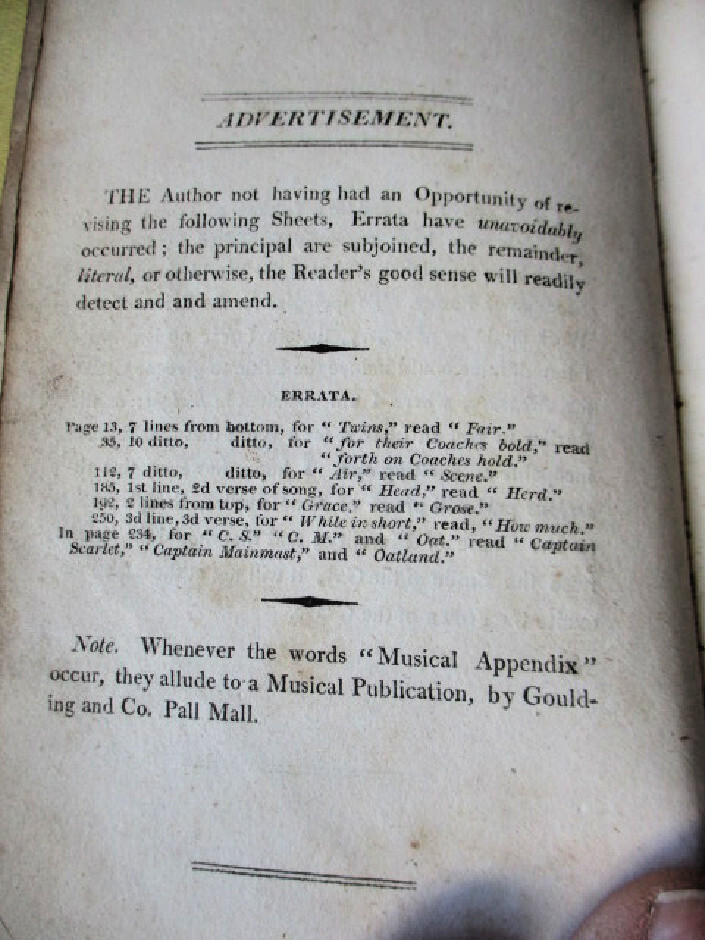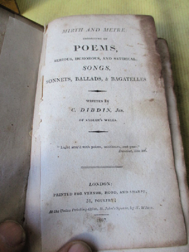 Poems Mirth and Song by C Dibdin Jr of Sadlers Wells 1807